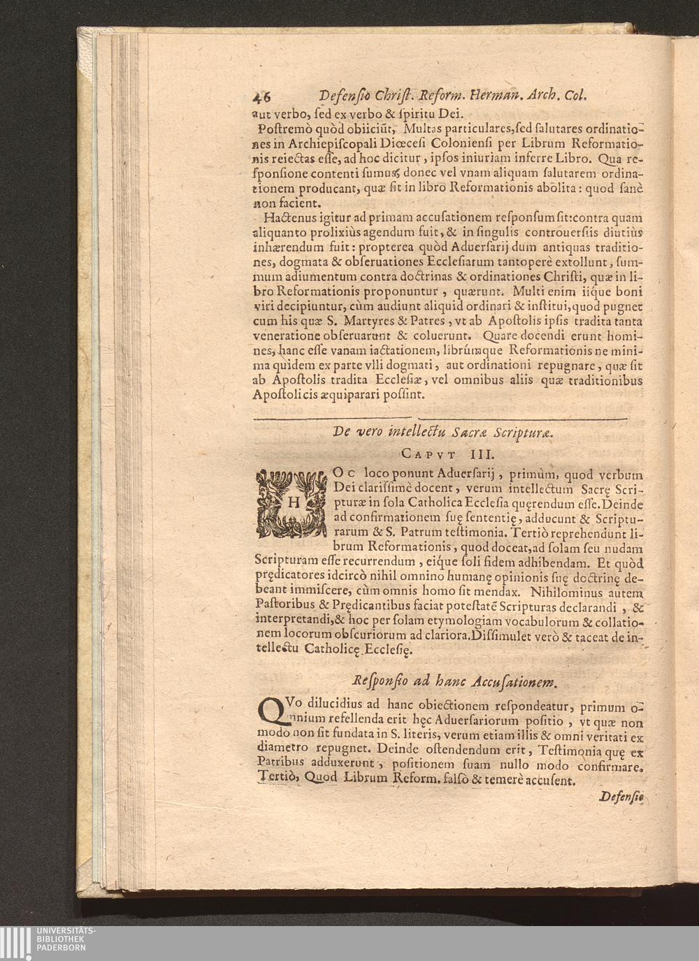 Constans Defensio, Ex S. Scriptvra, Et Vera Catholica Doctrina, Atqve Observatione Vniuersalis Christianæ Ecclesiæ Deliberationis de Christiana Reformatione : Quam Reuerendißimus in Deo Pater, Princeps & Dominus D. Hermannvs Archiepiscopus Coloniensis, & Princeps Elector, &c. iam antè publicauit ... / Auctore D. Martino Bvcero
