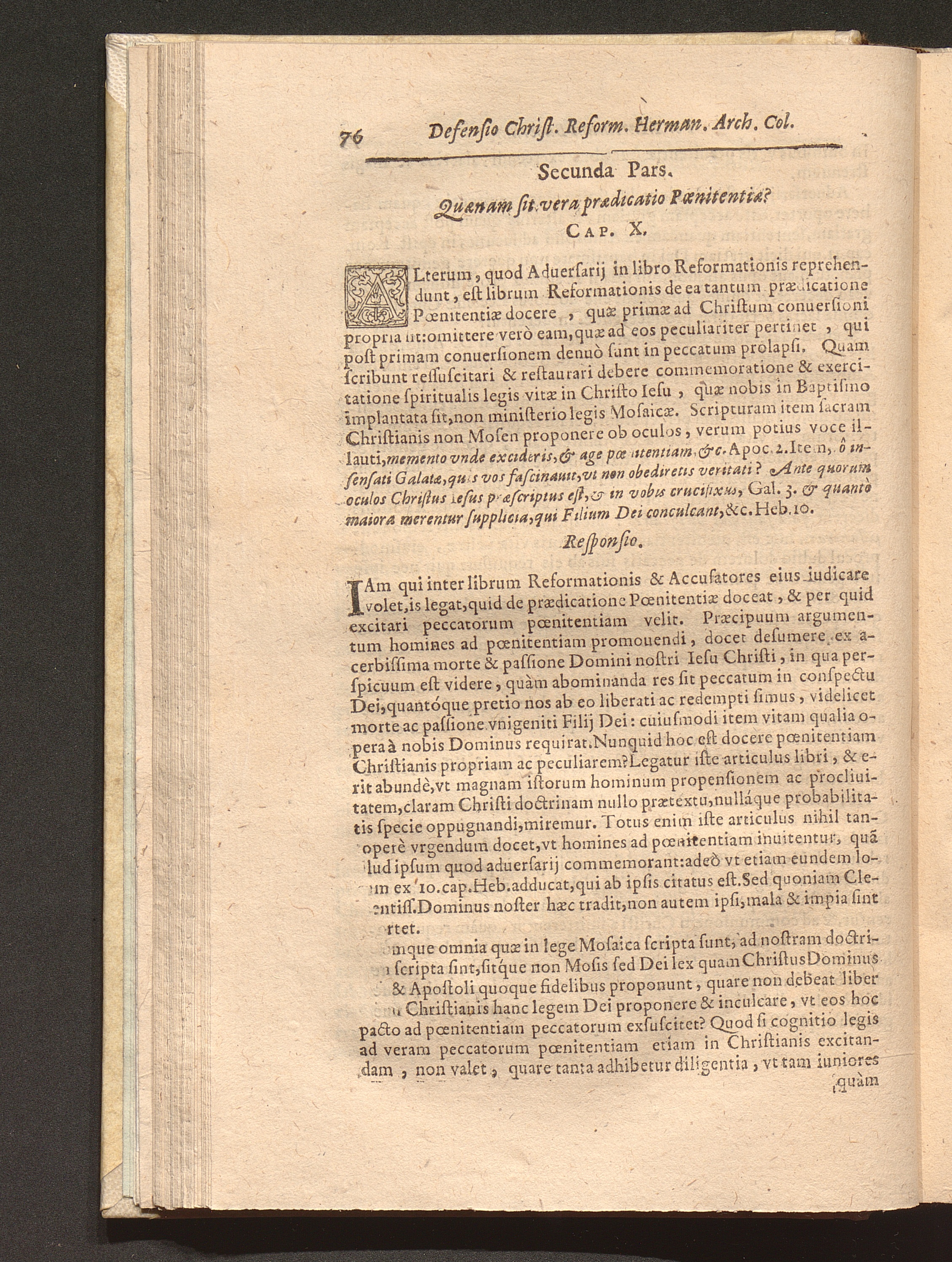 Constans Defensio, Ex S. Scriptvra, Et Vera Catholica Doctrina, Atqve Observatione Vniuersalis Christianæ Ecclesiæ Deliberationis de Christiana Reformatione : Quam Reuerendißimus in Deo Pater, Princeps & Dominus D. Hermannvs Archiepiscopus Coloniensis, & Princeps Elector, &c. iam antè publicauit ... / Auctore D. Martino Bvcero