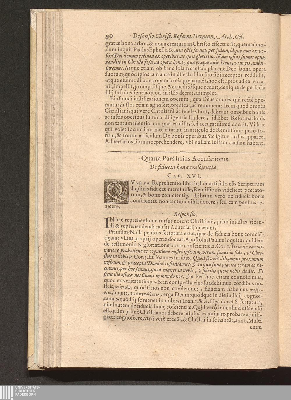 Constans Defensio, Ex S. Scriptvra, Et Vera Catholica Doctrina, Atqve Observatione Vniuersalis Christianæ Ecclesiæ Deliberationis de Christiana Reformatione : Quam Reuerendißimus in Deo Pater, Princeps & Dominus D. Hermannvs Archiepiscopus Coloniensis, & Princeps Elector, &c. iam antè publicauit ... / Auctore D. Martino Bvcero