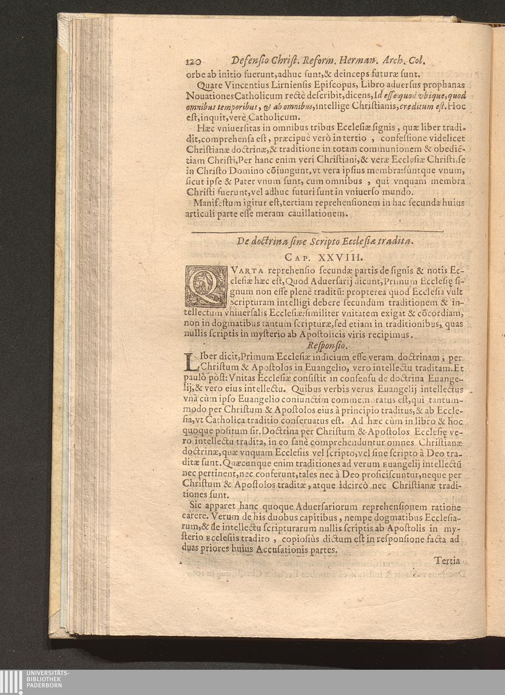 Constans Defensio, Ex S. Scriptvra, Et Vera Catholica Doctrina, Atqve Observatione Vniuersalis Christianæ Ecclesiæ Deliberationis de Christiana Reformatione : Quam Reuerendißimus in Deo Pater, Princeps & Dominus D. Hermannvs Archiepiscopus Coloniensis, & Princeps Elector, &c. iam antè publicauit ... / Auctore D. Martino Bvcero