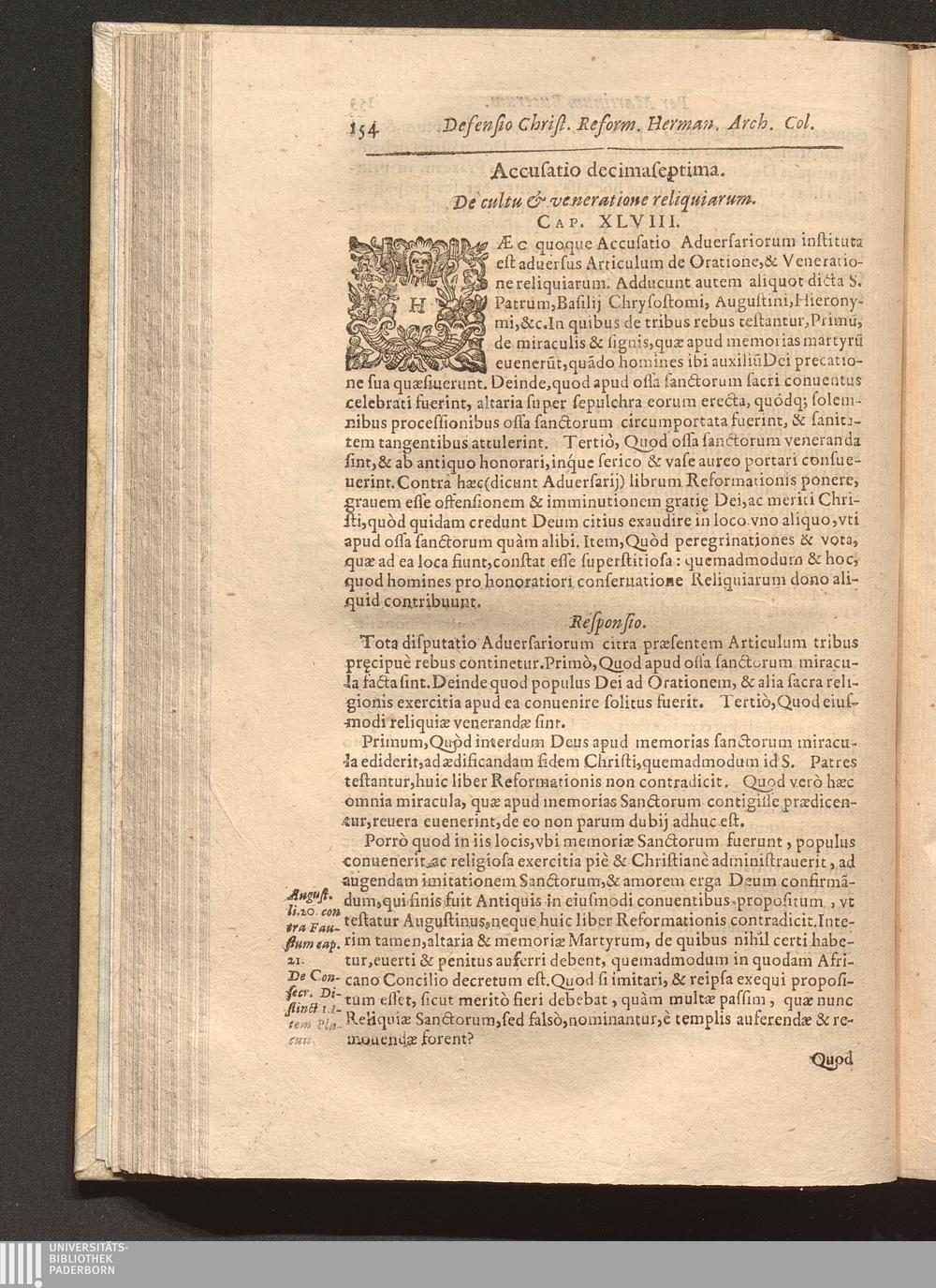Constans Defensio, Ex S. Scriptvra, Et Vera Catholica Doctrina, Atqve Observatione Vniuersalis Christianæ Ecclesiæ Deliberationis de Christiana Reformatione : Quam Reuerendißimus in Deo Pater, Princeps & Dominus D. Hermannvs Archiepiscopus Coloniensis, & Princeps Elector, &c. iam antè publicauit ... / Auctore D. Martino Bvcero