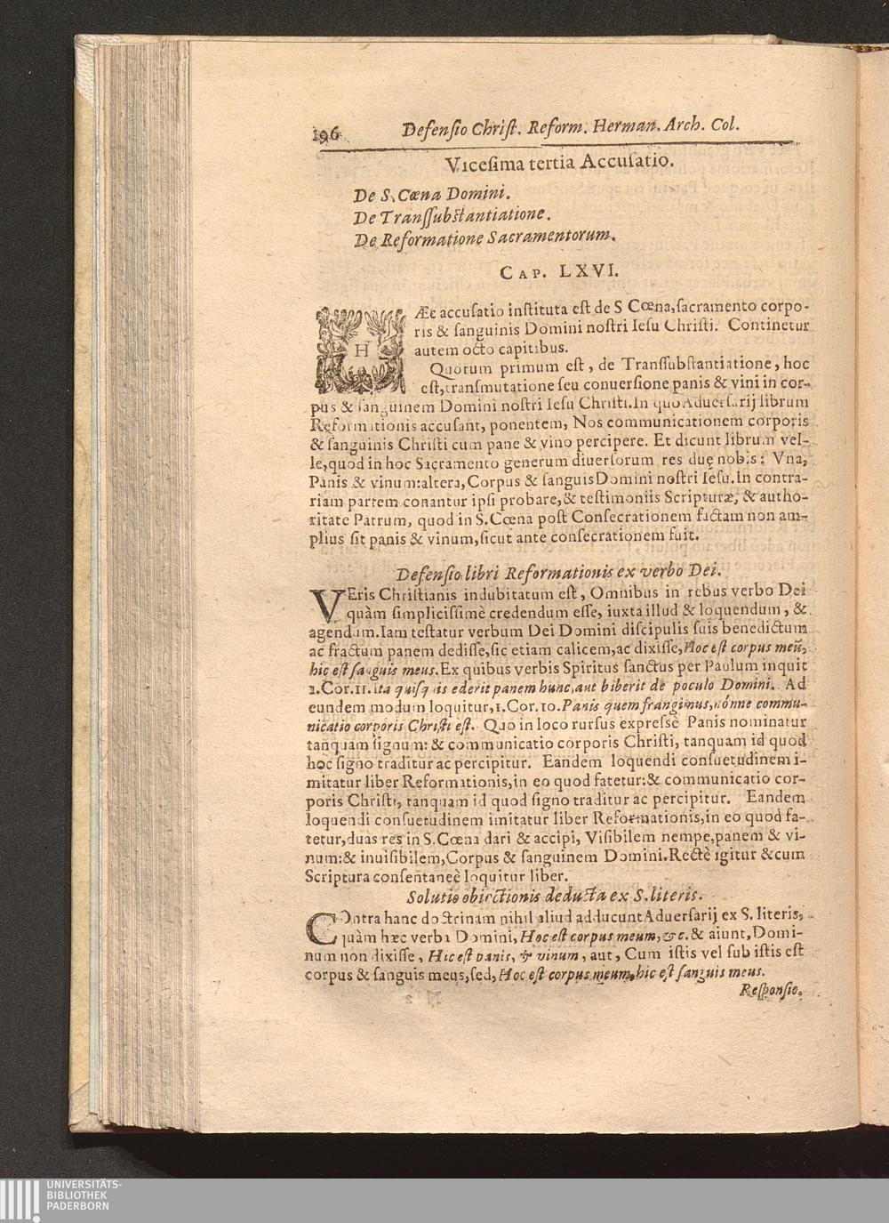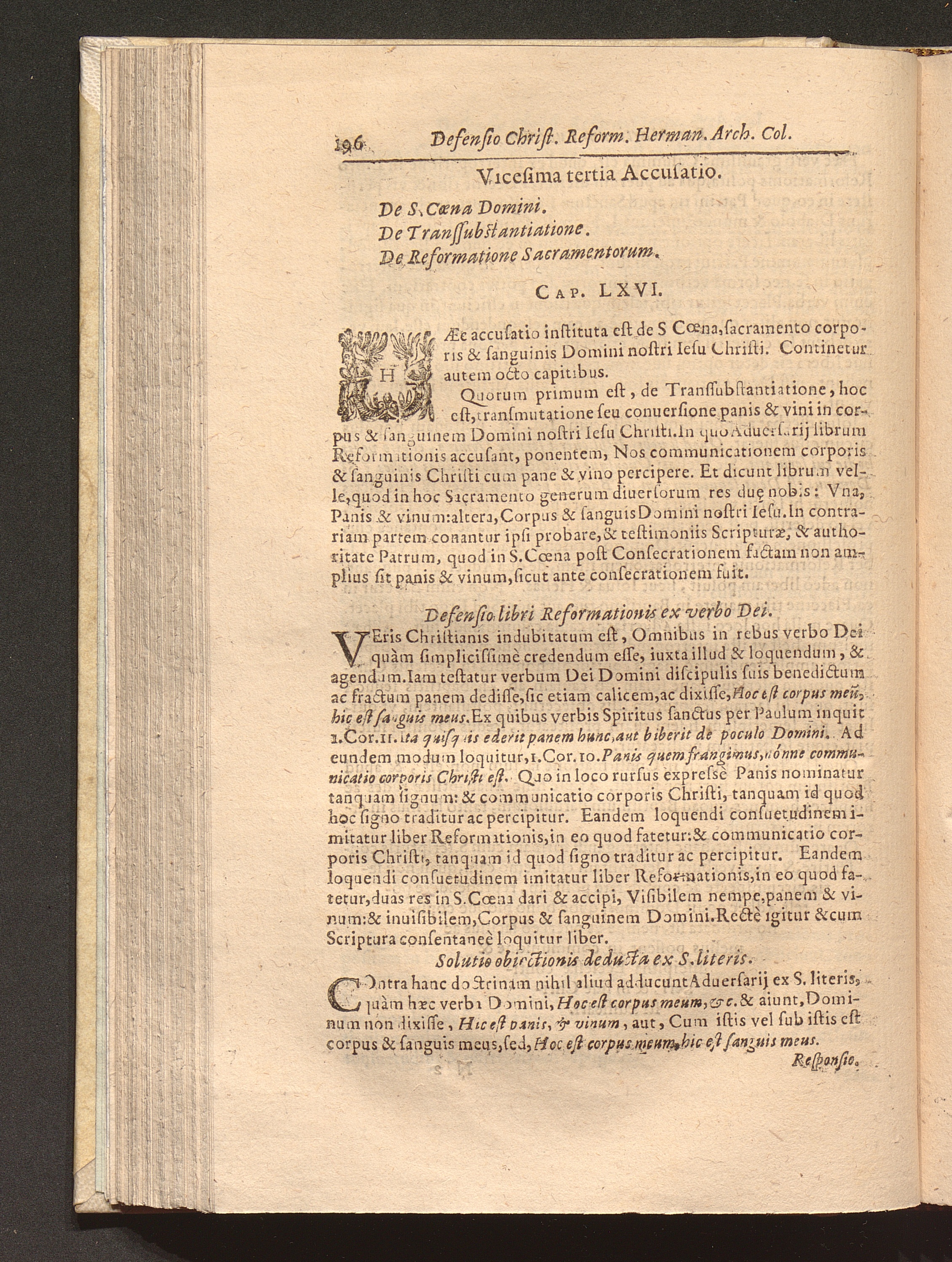 Constans Defensio, Ex S. Scriptvra, Et Vera Catholica Doctrina, Atqve Observatione Vniuersalis Christianæ Ecclesiæ Deliberationis de Christiana Reformatione : Quam Reuerendißimus in Deo Pater, Princeps & Dominus D. Hermannvs Archiepiscopus Coloniensis, & Princeps Elector, &c. iam antè publicauit ... / Auctore D. Martino Bvcero