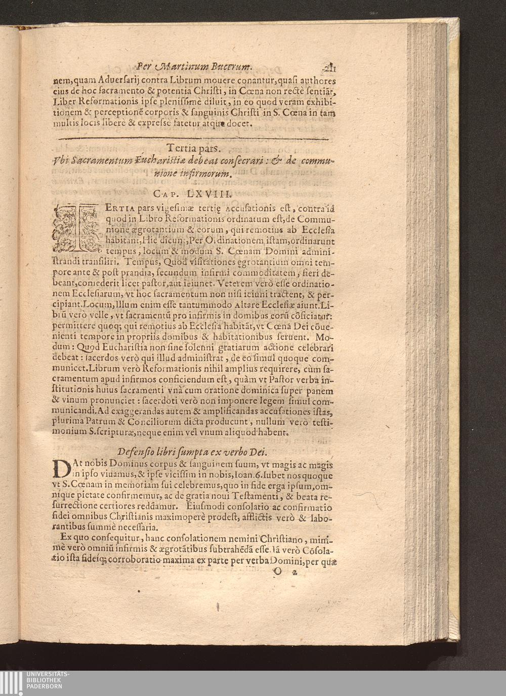 Constans Defensio, Ex S. Scriptvra, Et Vera Catholica Doctrina, Atqve Observatione Vniuersalis Christianæ Ecclesiæ Deliberationis de Christiana Reformatione : Quam Reuerendißimus in Deo Pater, Princeps & Dominus D. Hermannvs Archiepiscopus Coloniensis, & Princeps Elector, &c. iam antè publicauit ... / Auctore D. Martino Bvcero