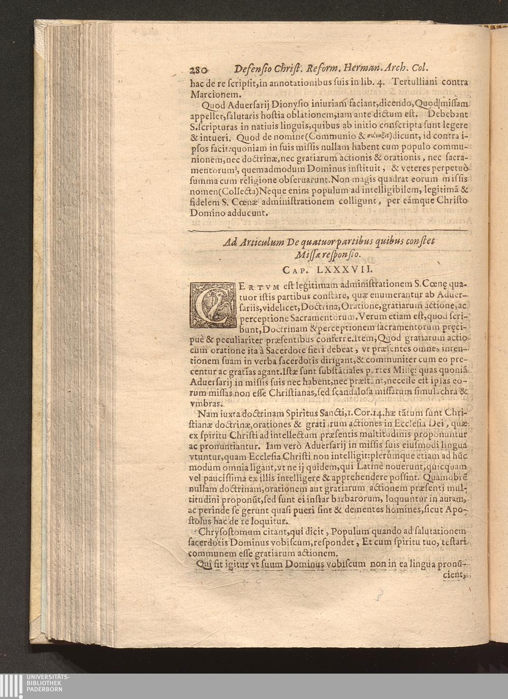 Constans Defensio, Ex S. Scriptvra, Et Vera Catholica Doctrina, Atqve Observatione Vniuersalis Christianæ Ecclesiæ Deliberationis de Christiana Reformatione : Quam Reuerendißimus in Deo Pater, Princeps & Dominus D. Hermannvs Archiepiscopus Coloniensis, & Princeps Elector, &c. iam antè publicauit ... / Auctore D. Martino Bvcero