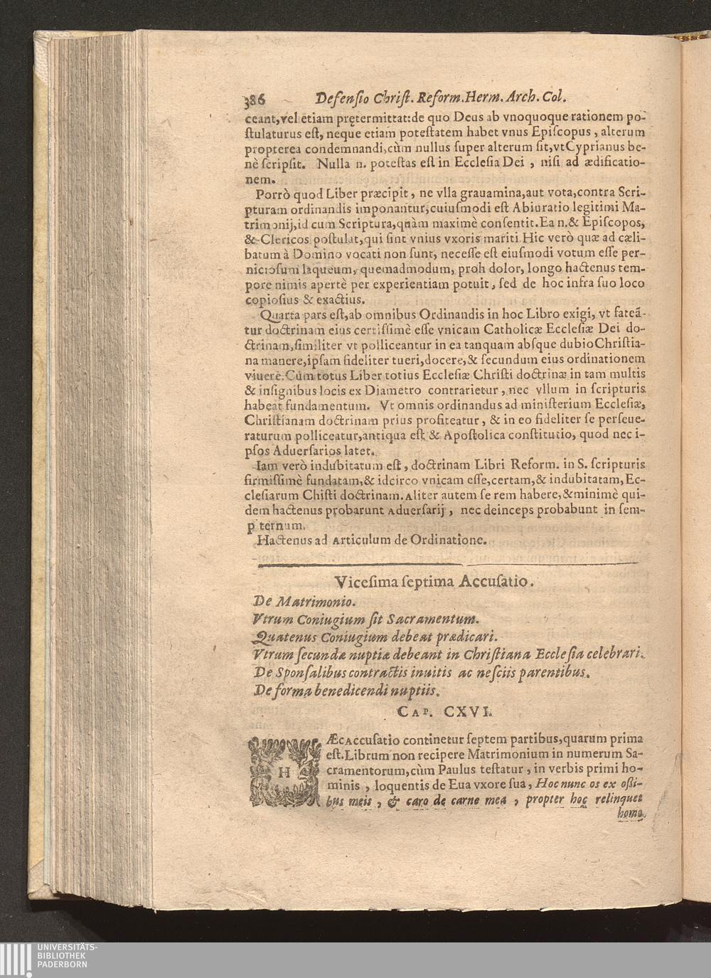 Constans Defensio, Ex S. Scriptvra, Et Vera Catholica Doctrina, Atqve Observatione Vniuersalis Christianæ Ecclesiæ Deliberationis de Christiana Reformatione : Quam Reuerendißimus in Deo Pater, Princeps & Dominus D. Hermannvs Archiepiscopus Coloniensis, & Princeps Elector, &c. iam antè publicauit ... / Auctore D. Martino Bvcero
