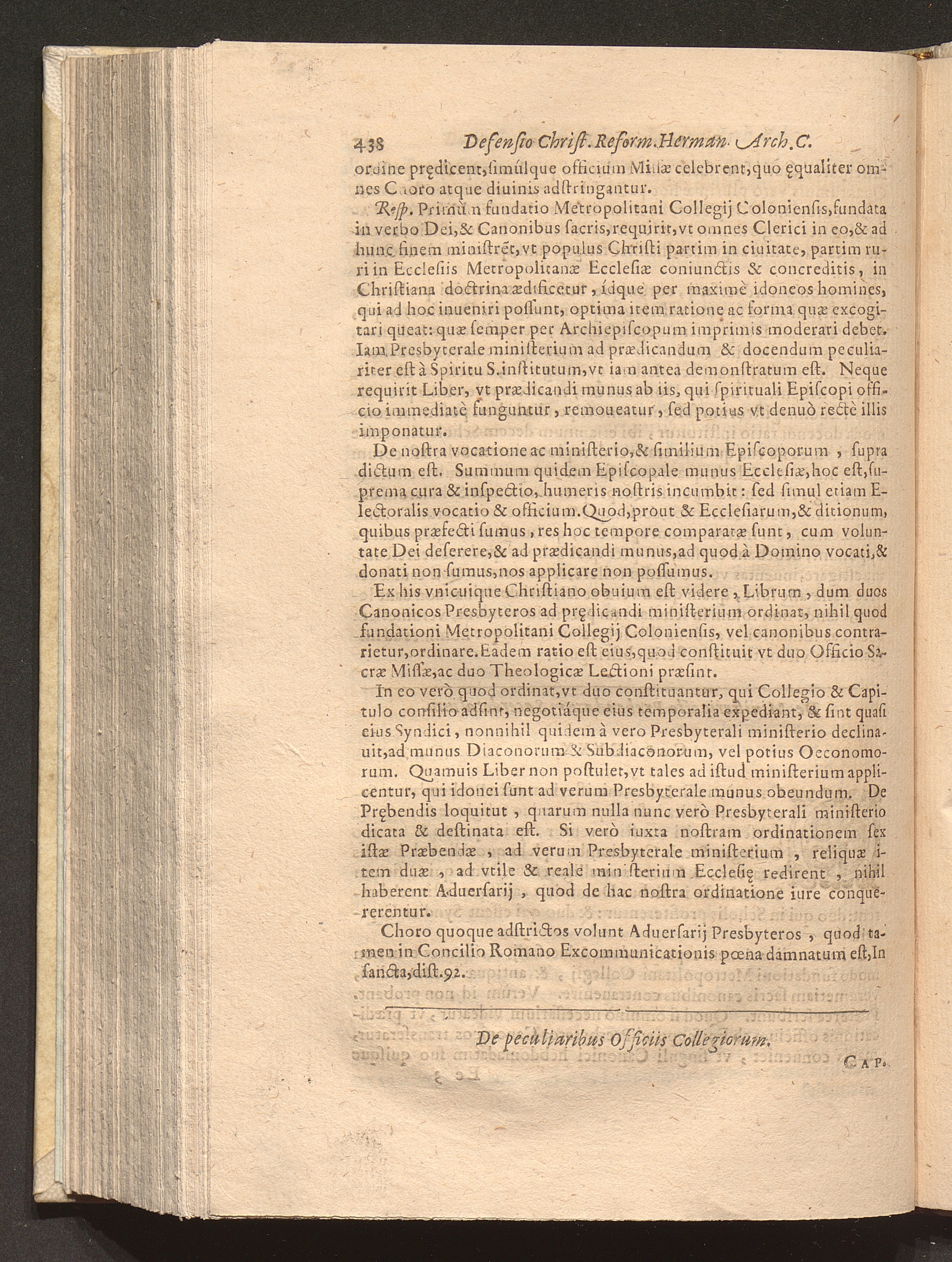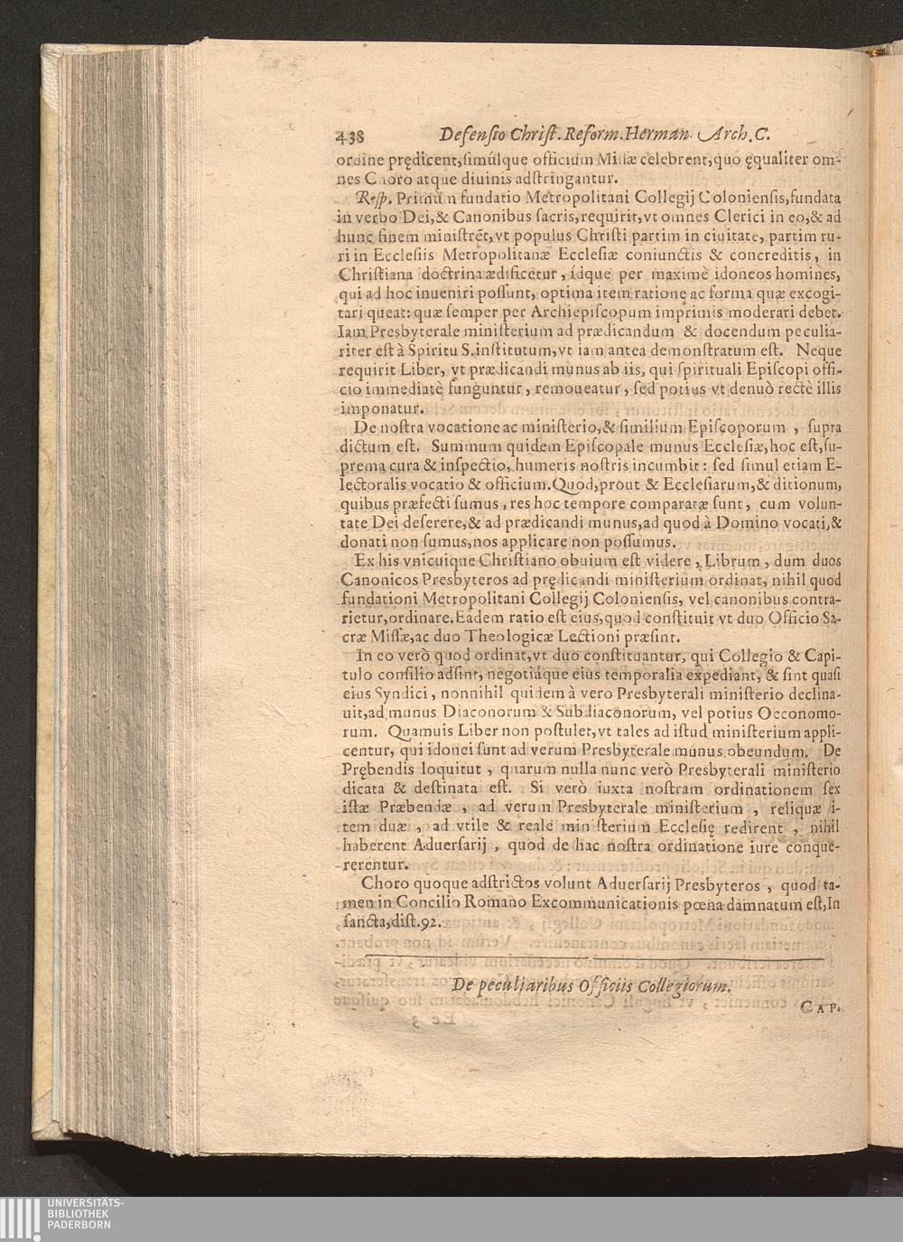 Constans Defensio, Ex S. Scriptvra, Et Vera Catholica Doctrina, Atqve Observatione Vniuersalis Christianæ Ecclesiæ Deliberationis de Christiana Reformatione : Quam Reuerendißimus in Deo Pater, Princeps & Dominus D. Hermannvs Archiepiscopus Coloniensis, & Princeps Elector, &c. iam antè publicauit ... / Auctore D. Martino Bvcero