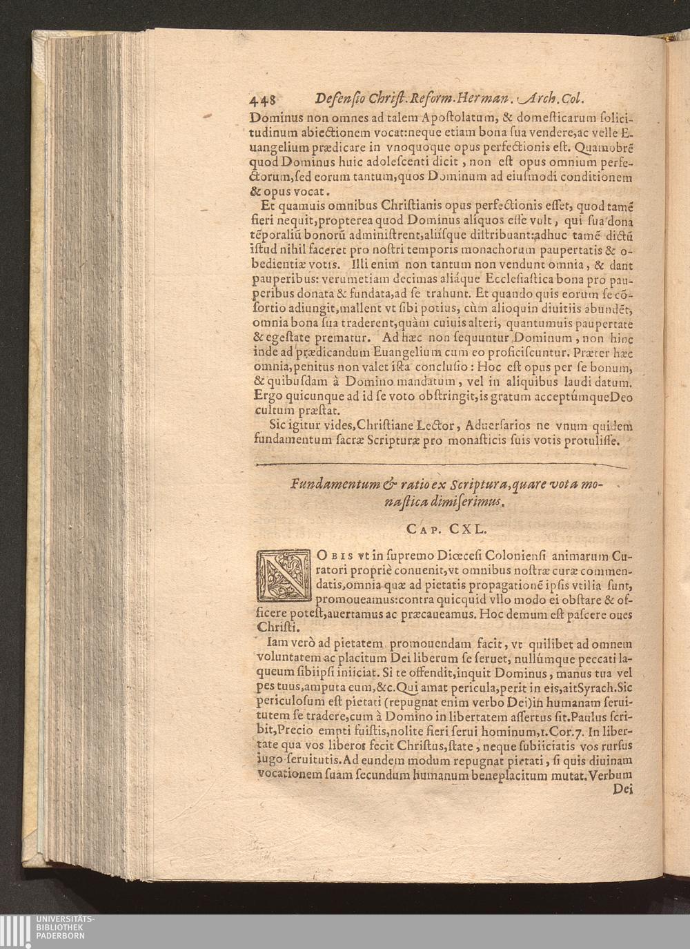 Constans Defensio, Ex S. Scriptvra, Et Vera Catholica Doctrina, Atqve Observatione Vniuersalis Christianæ Ecclesiæ Deliberationis de Christiana Reformatione : Quam Reuerendißimus in Deo Pater, Princeps & Dominus D. Hermannvs Archiepiscopus Coloniensis, & Princeps Elector, &c. iam antè publicauit ... / Auctore D. Martino Bvcero