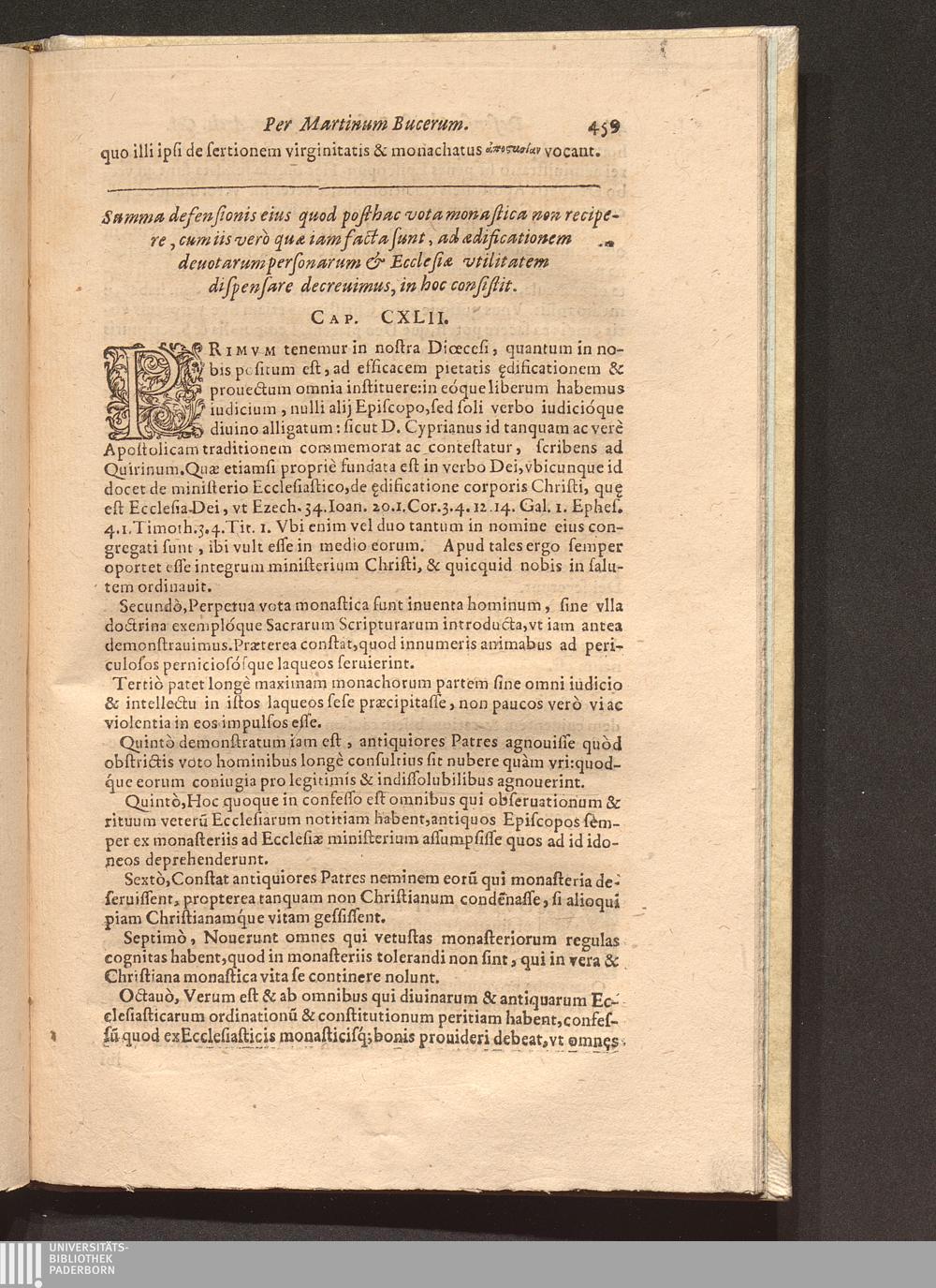 Constans Defensio, Ex S. Scriptvra, Et Vera Catholica Doctrina, Atqve Observatione Vniuersalis Christianæ Ecclesiæ Deliberationis de Christiana Reformatione : Quam Reuerendißimus in Deo Pater, Princeps & Dominus D. Hermannvs Archiepiscopus Coloniensis, & Princeps Elector, &c. iam antè publicauit ... / Auctore D. Martino Bvcero