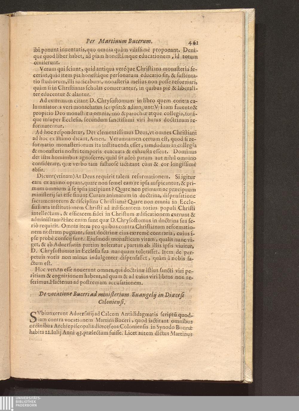 Constans Defensio, Ex S. Scriptvra, Et Vera Catholica Doctrina, Atqve Observatione Vniuersalis Christianæ Ecclesiæ Deliberationis de Christiana Reformatione : Quam Reuerendißimus in Deo Pater, Princeps & Dominus D. Hermannvs Archiepiscopus Coloniensis, & Princeps Elector, &c. iam antè publicauit ... / Auctore D. Martino Bvcero