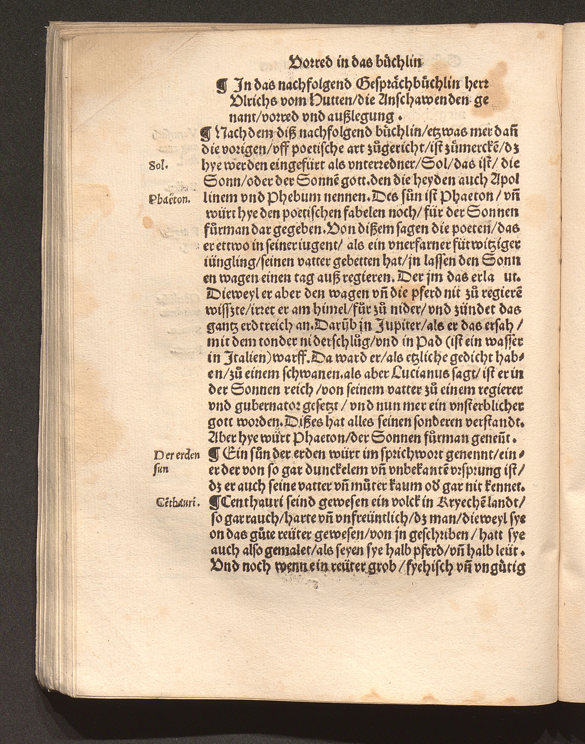 Jn das nachfolgend Gesprächbüchlin herr Vlrichs vom Hutten/ die Anschawenden genant/ vorred vnd außlegung.