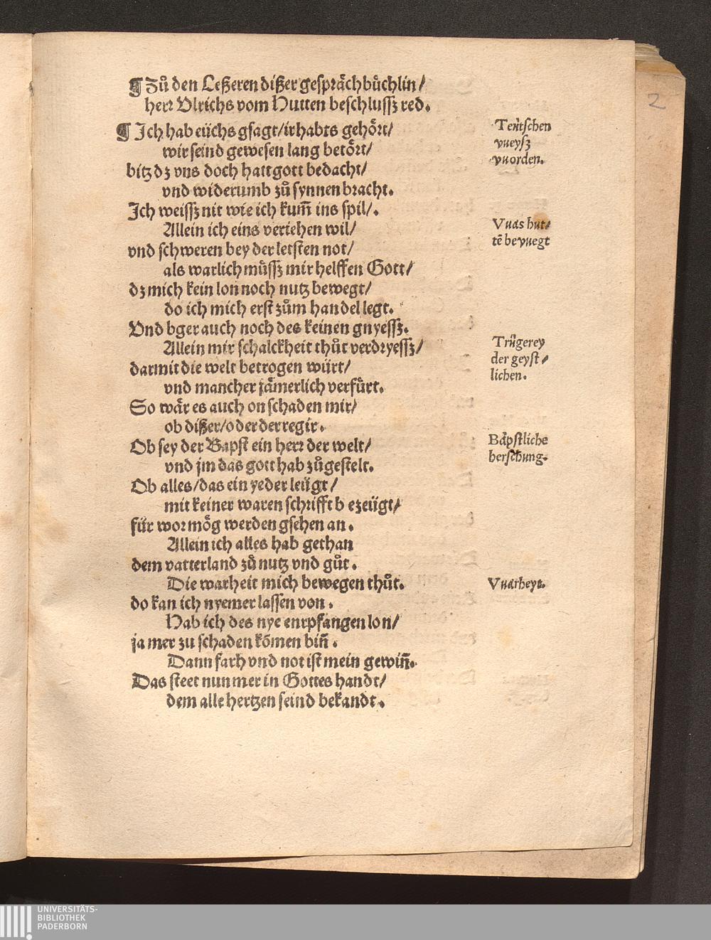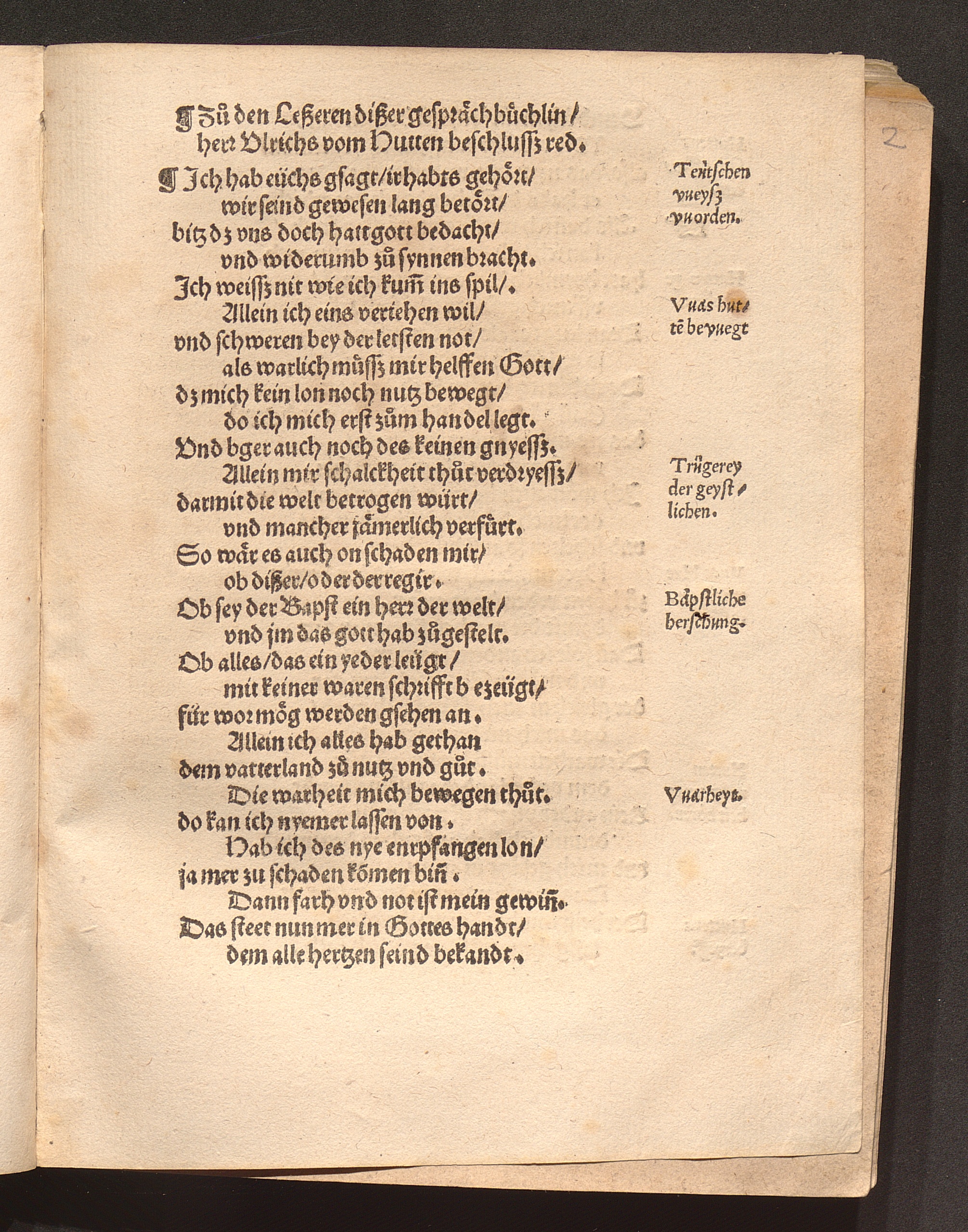 Zů den Leßeren dißer gesprächbüchlin/ herr Vlrichs vom Hutten beschlussz red.