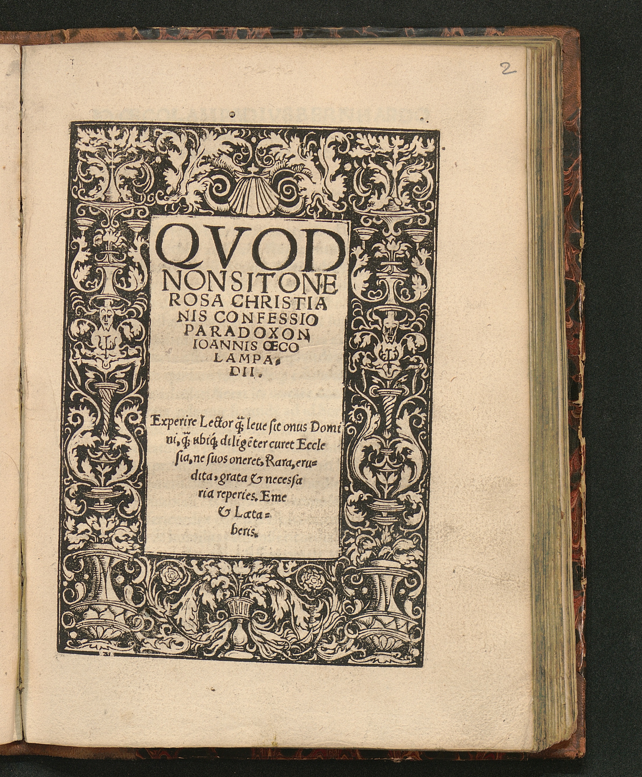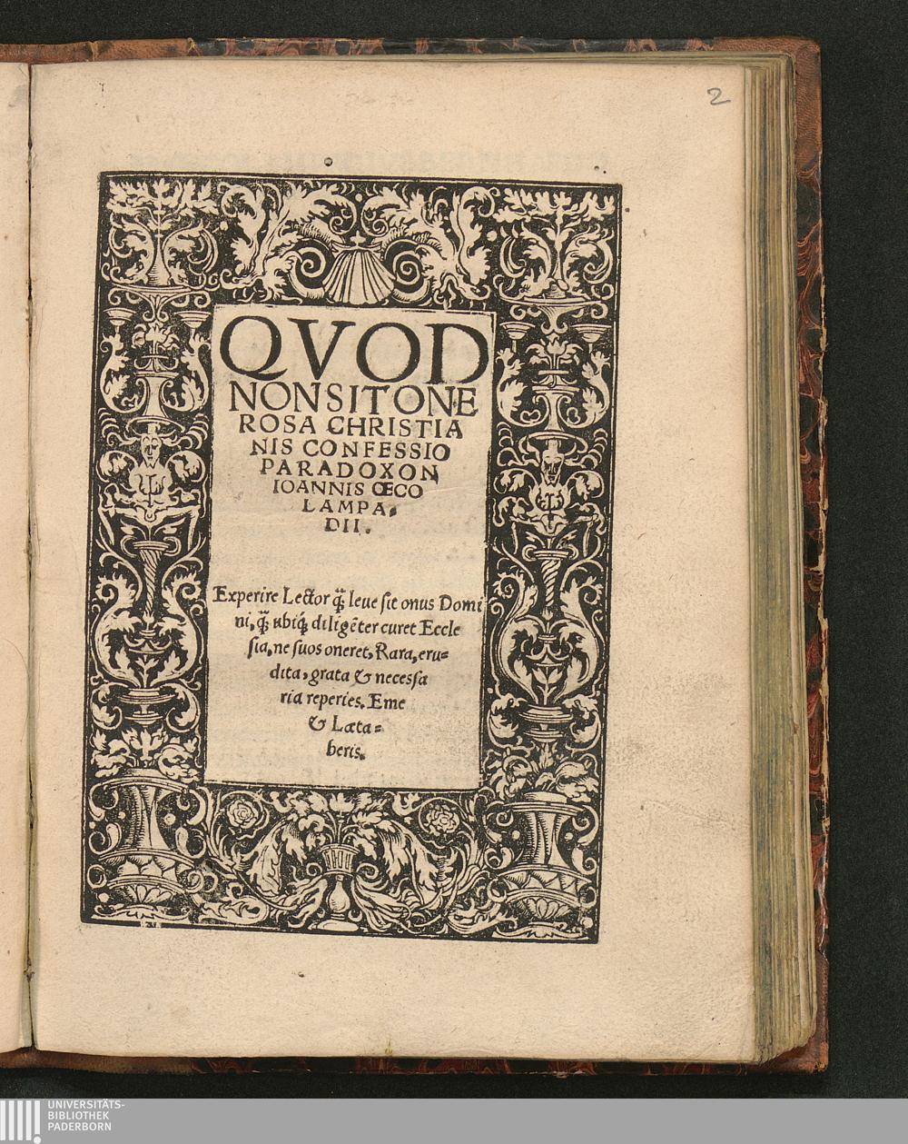 Qvod Non Sit Onerosa Christianis Confessio Paradoxon Ioannis Œcolampadii