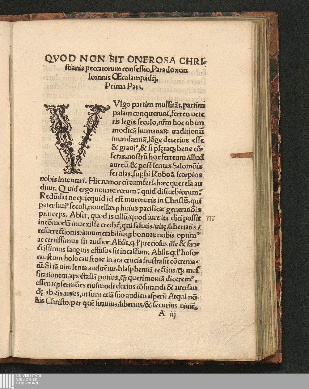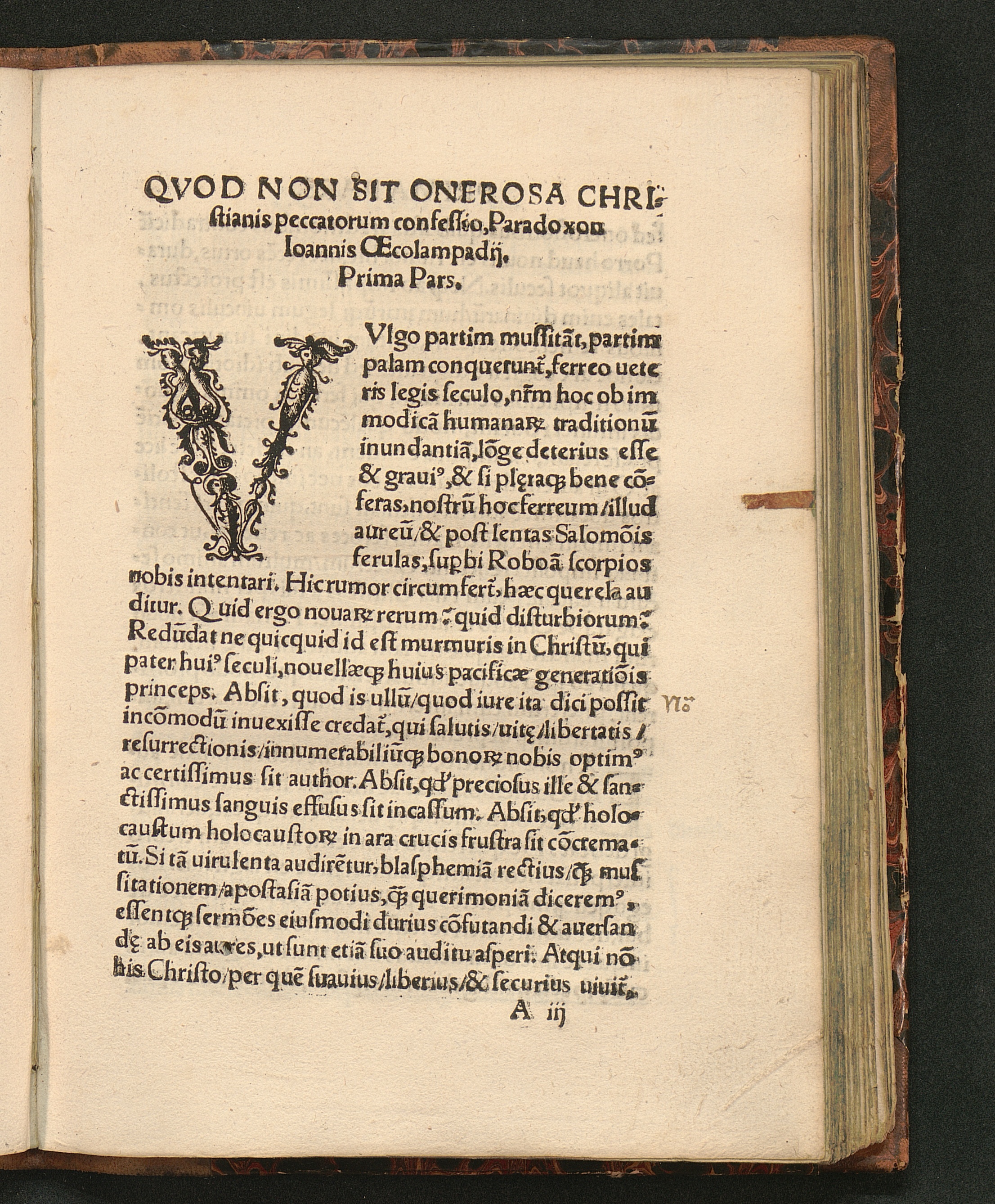 Qvod Non Sit Onerosa Christianis peccatorum confessio, Paradoxon Ioannis Oecolampadij.[...]