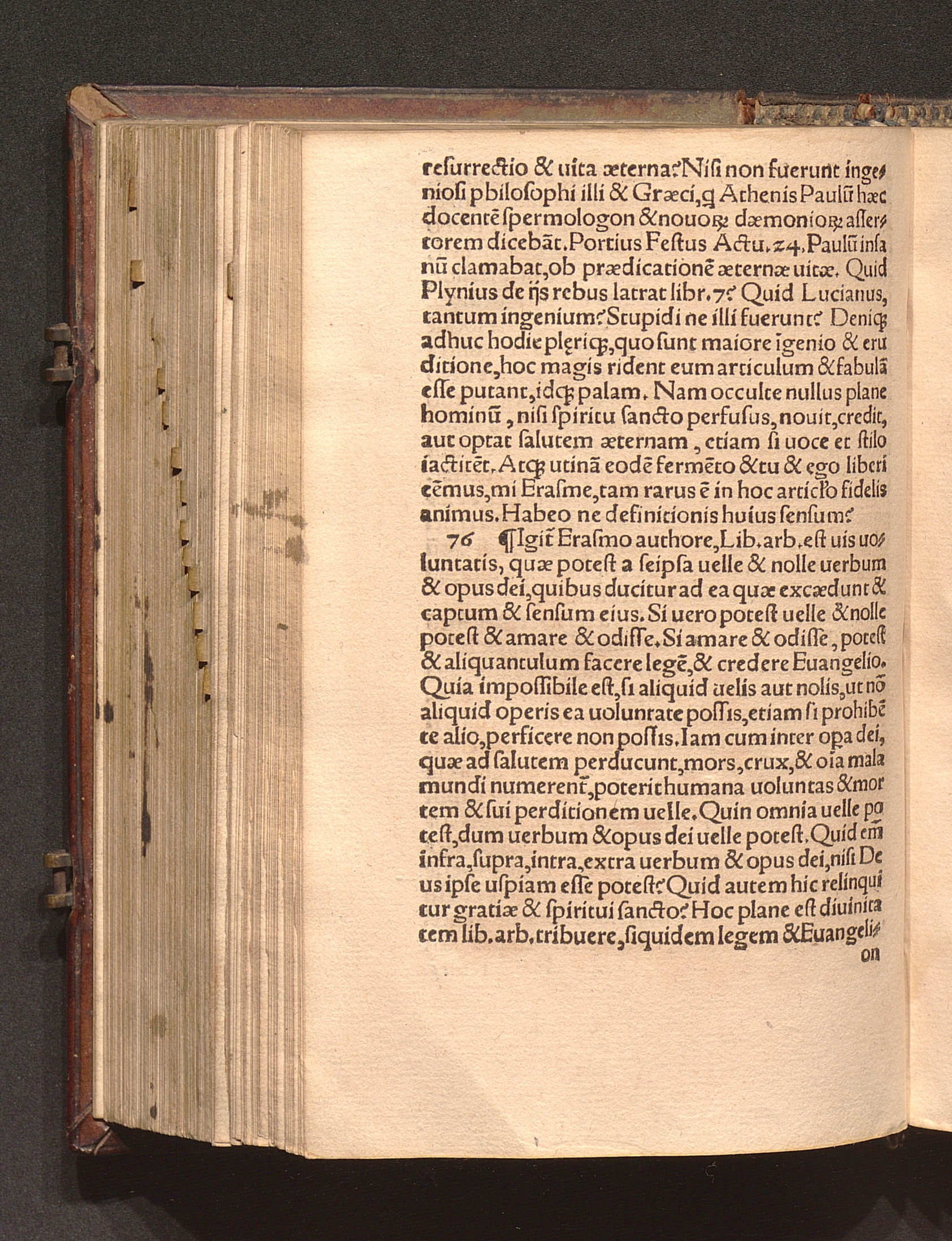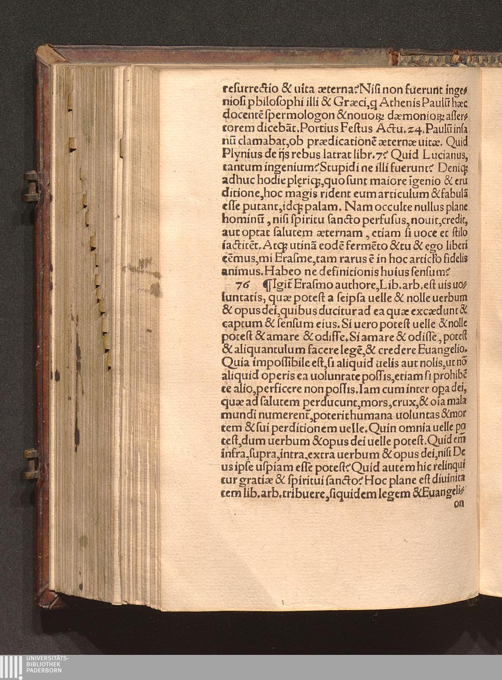 76. 77. 78 Illudunt[ur] cauillatio[n]es Lutheri de Erasmi impietate, & discutiun[...]