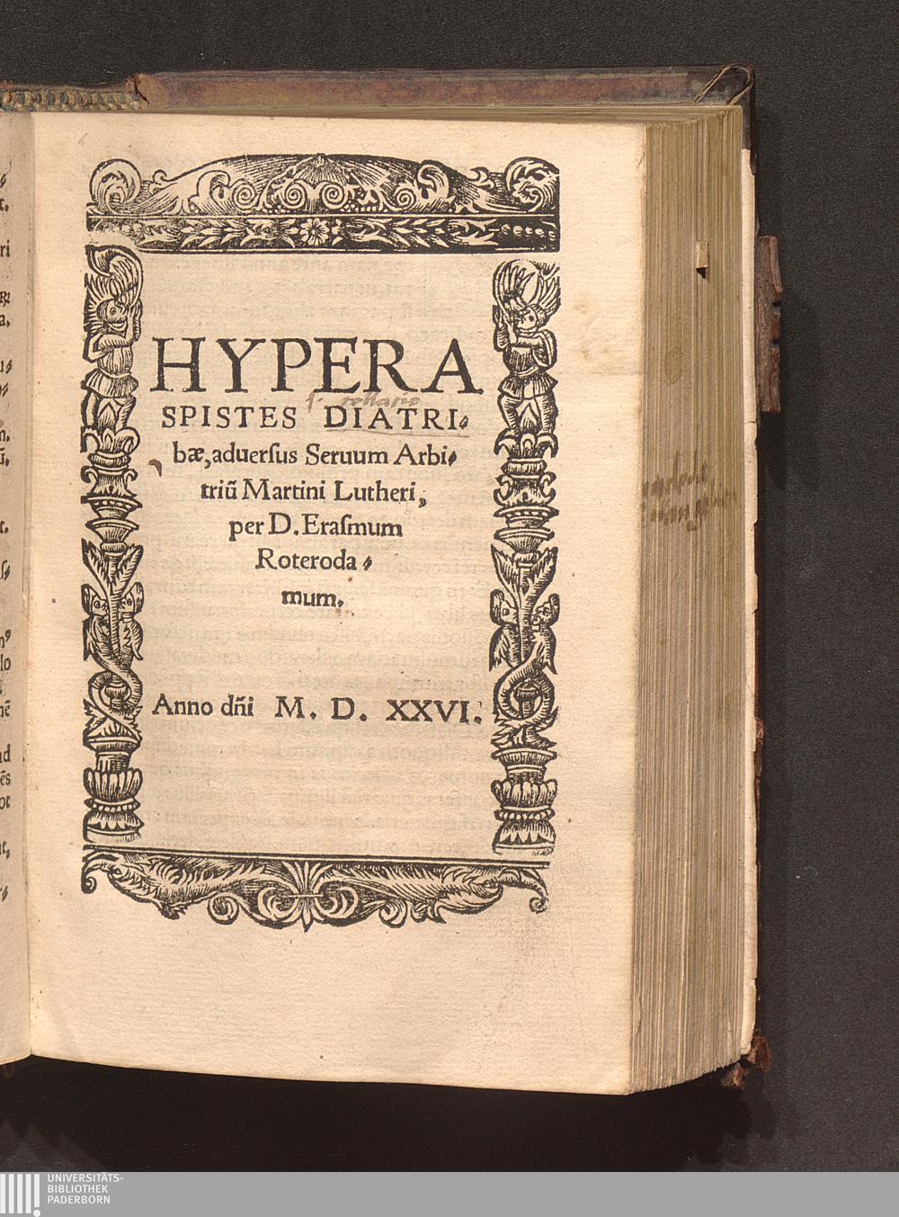 Hyperaspistes Diatribae, aduersus Seruum Arbitriu[m] Martini Lutheri, per D. Erasmum[...]