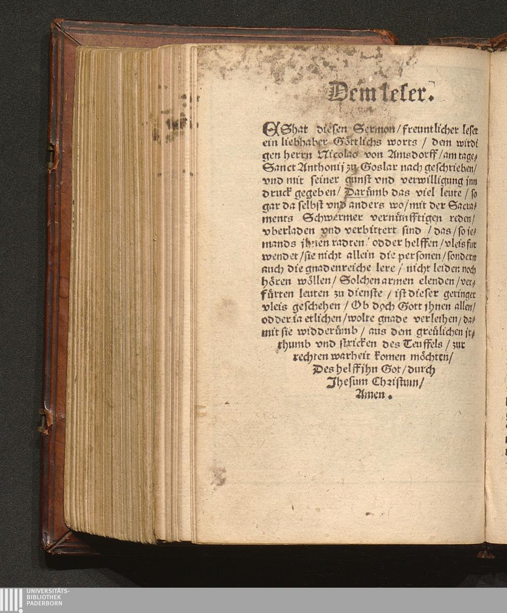 Ein schöner Sermon/ von dem wort/ zeichen/ vnd Sacrament / Nicolaus Amssdorff