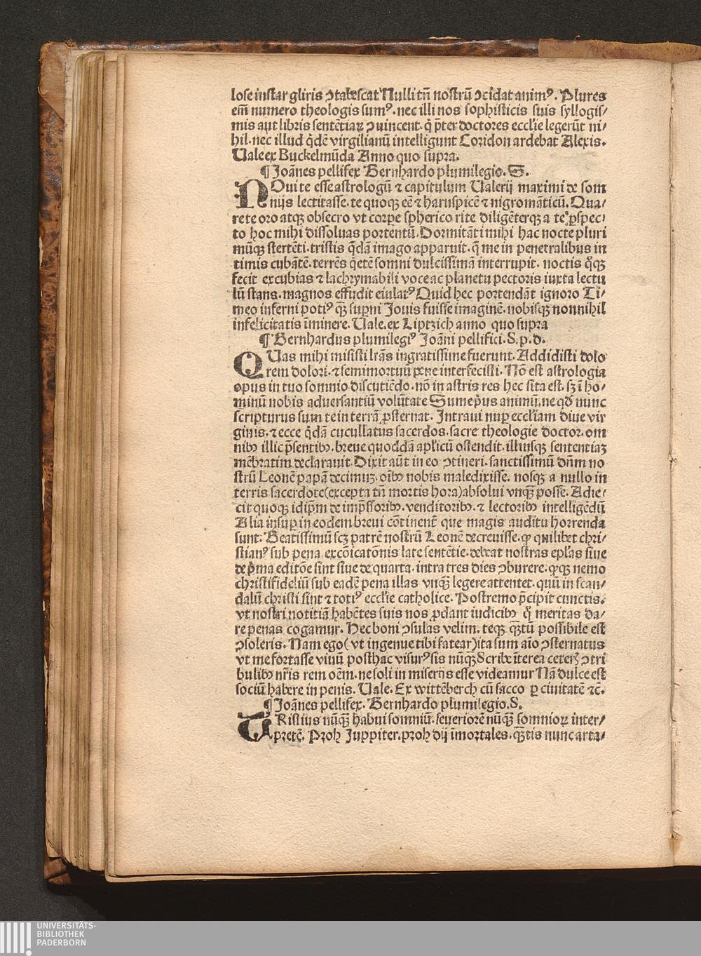Joa[n]nes pellifex. Bernhardo plumilegio. S.