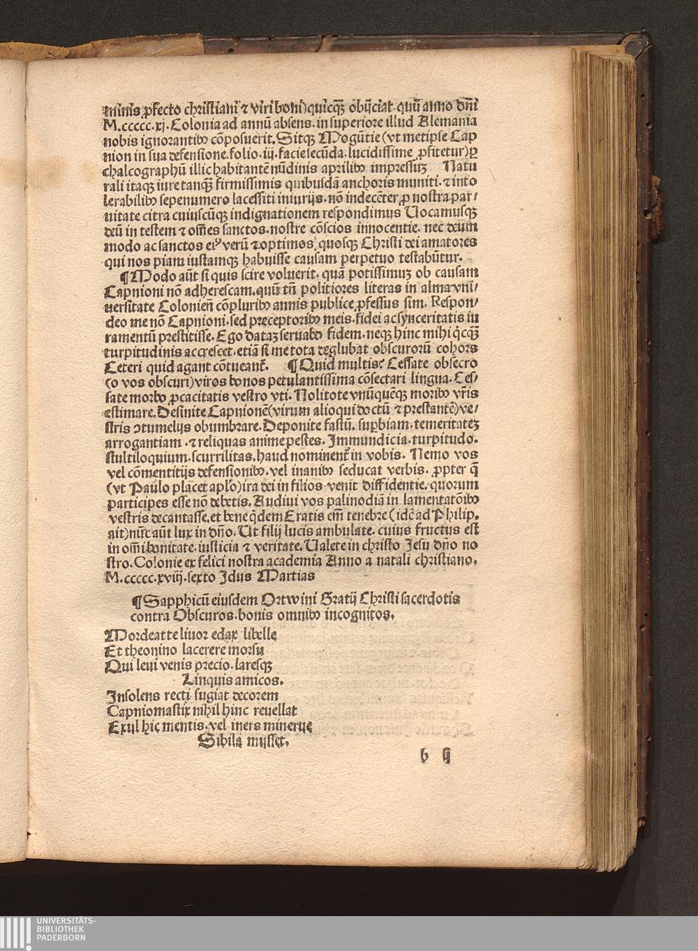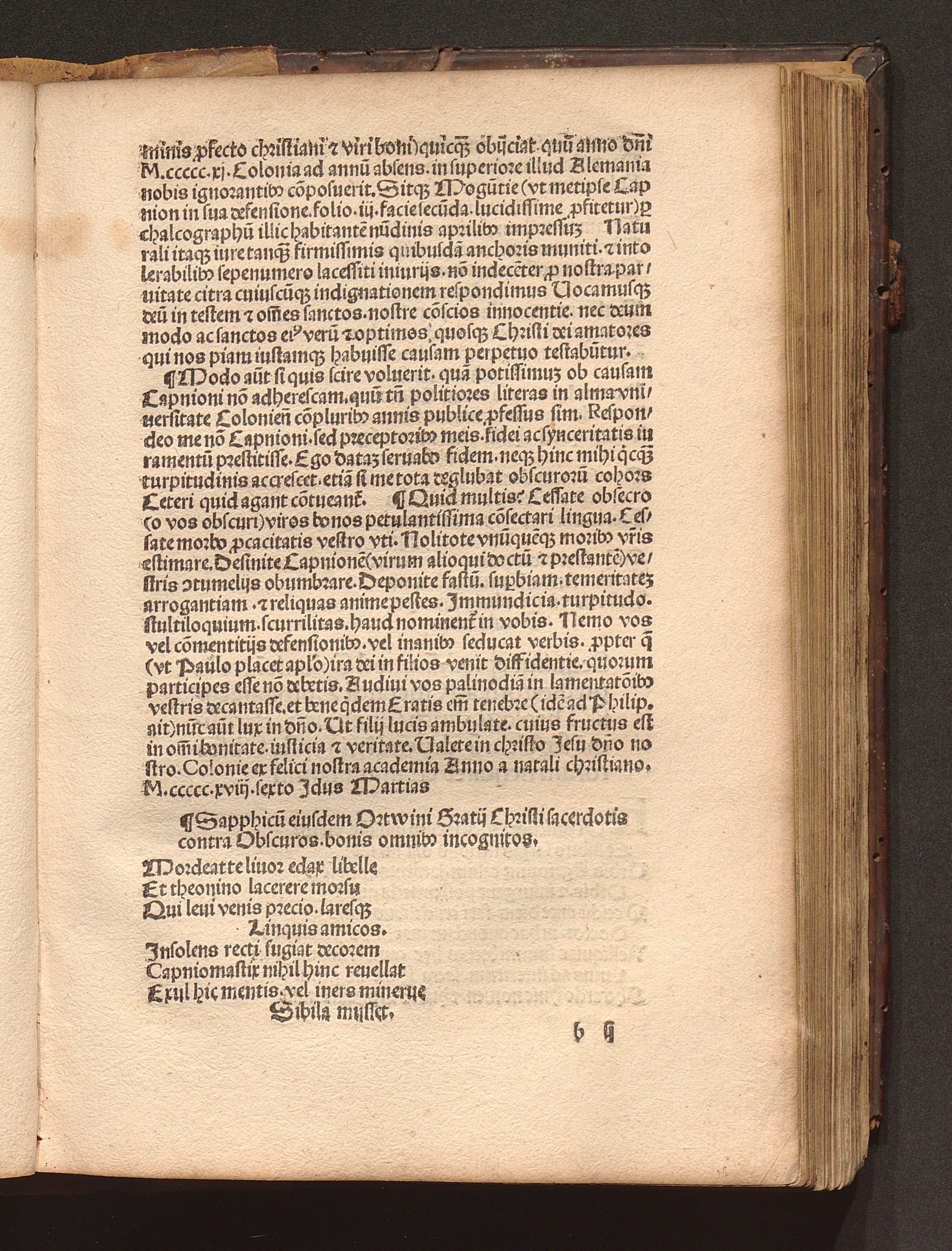Sapphicu[m] eiusdem Ortwini Gratij Christi sacerdotis contra Obscuros. bonis omnib[us][...]