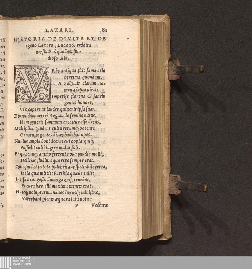 Historia de Diuitate et egeno Lazaro ex 16. cap. Lucæ, uersibus reddita.