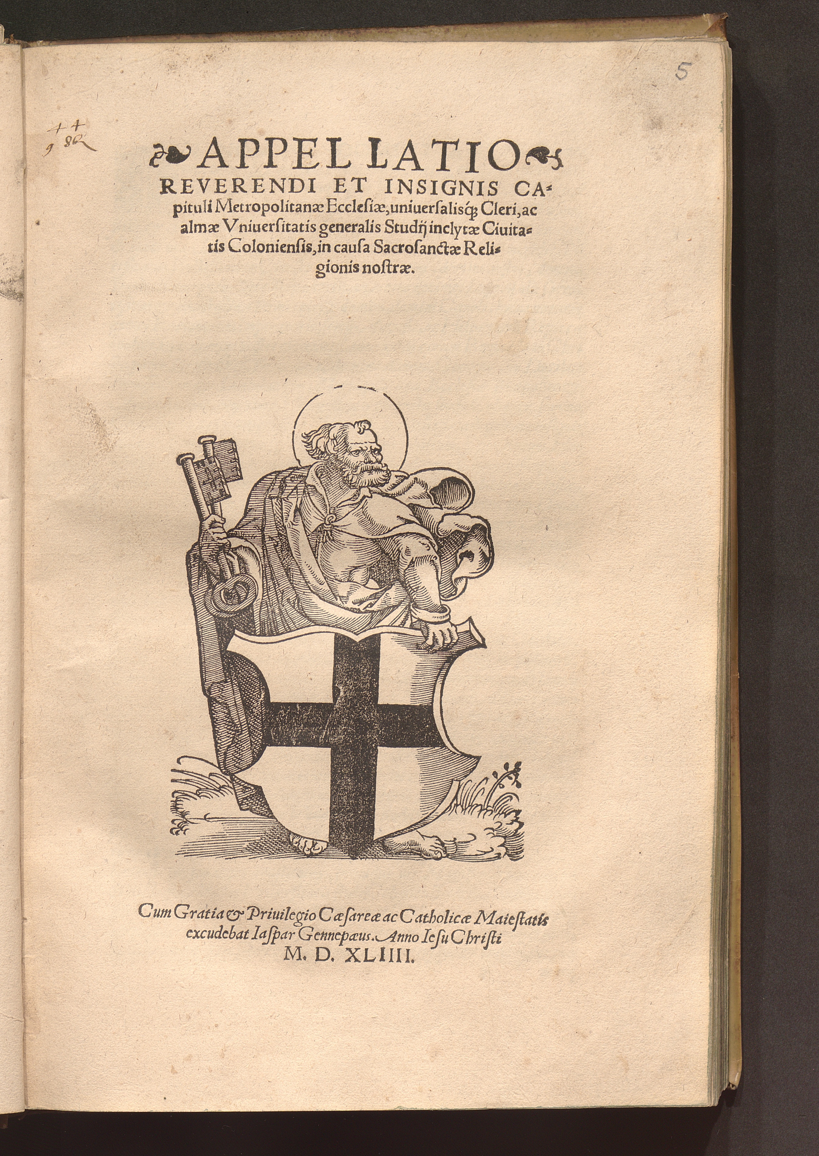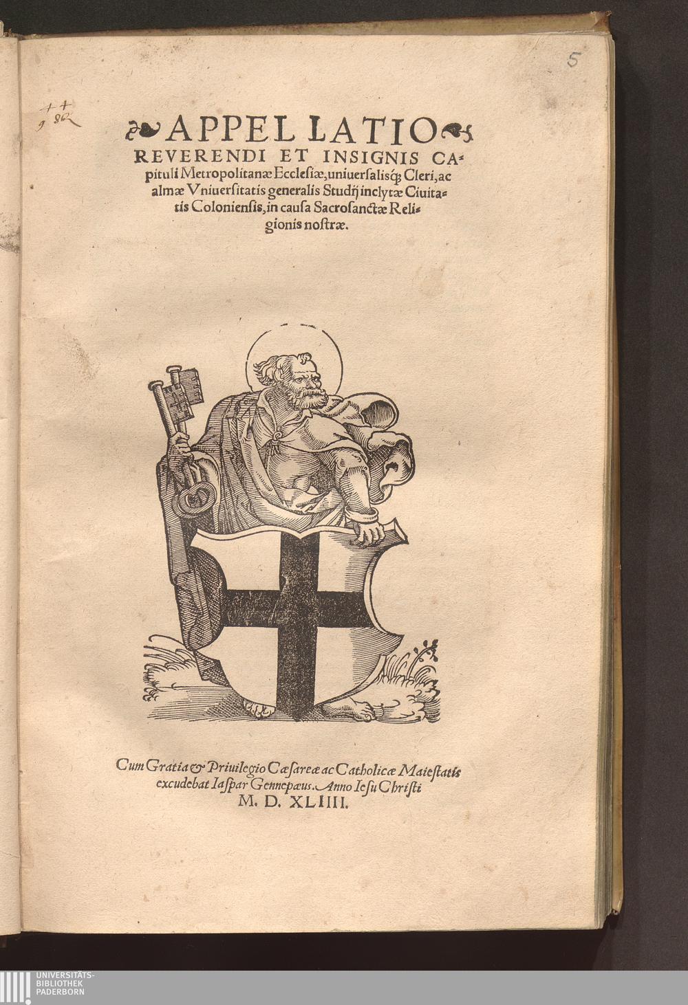 Appellatio Reverendi Et Insignis Capituli Metropolitanæ Ecclesiæ, uniuersalisq[ue] Cleri, ac almæ Vniuersitatis generalis Studij inclytæ Ciuitatis Coloniensis, in causa Sacrosanctæ Religionis nostræ