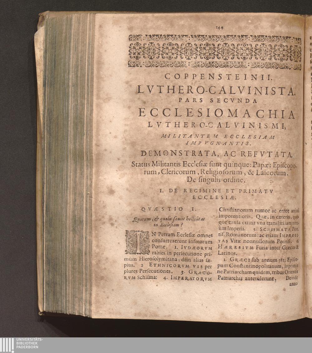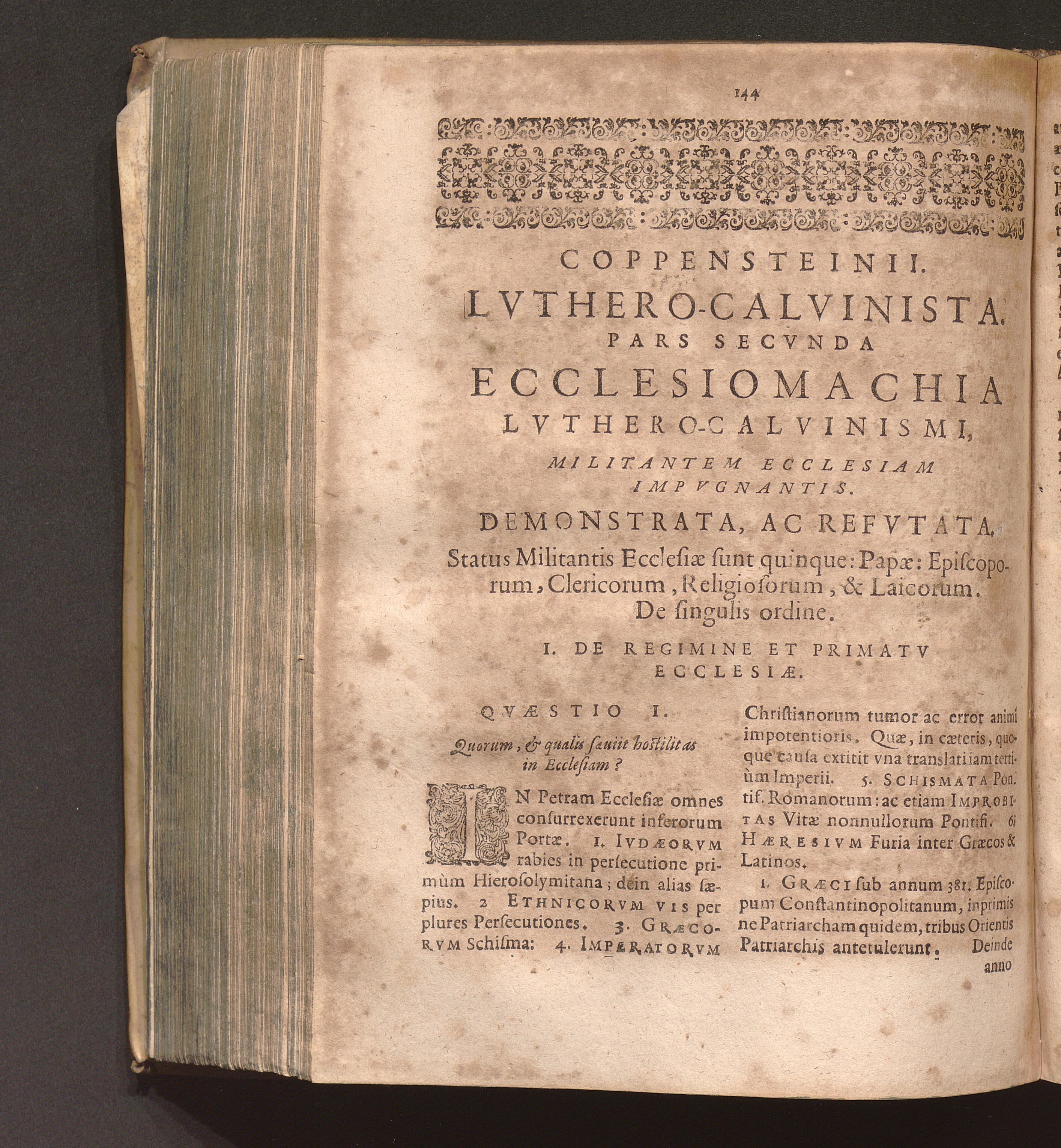 Controversiarvm Omnivm Hvivs Ævi Lvthero-Calvinisticarvm Libri Tres : Ex Illvstrissimo Cardinali Bellarmino in Epitomen redacti & sub diuersis titulis bis quatripartitis digesti / Avctore R. P. Fratre Ioanne Andrea Coppenstein Ordinis Prædicatorum Theologo