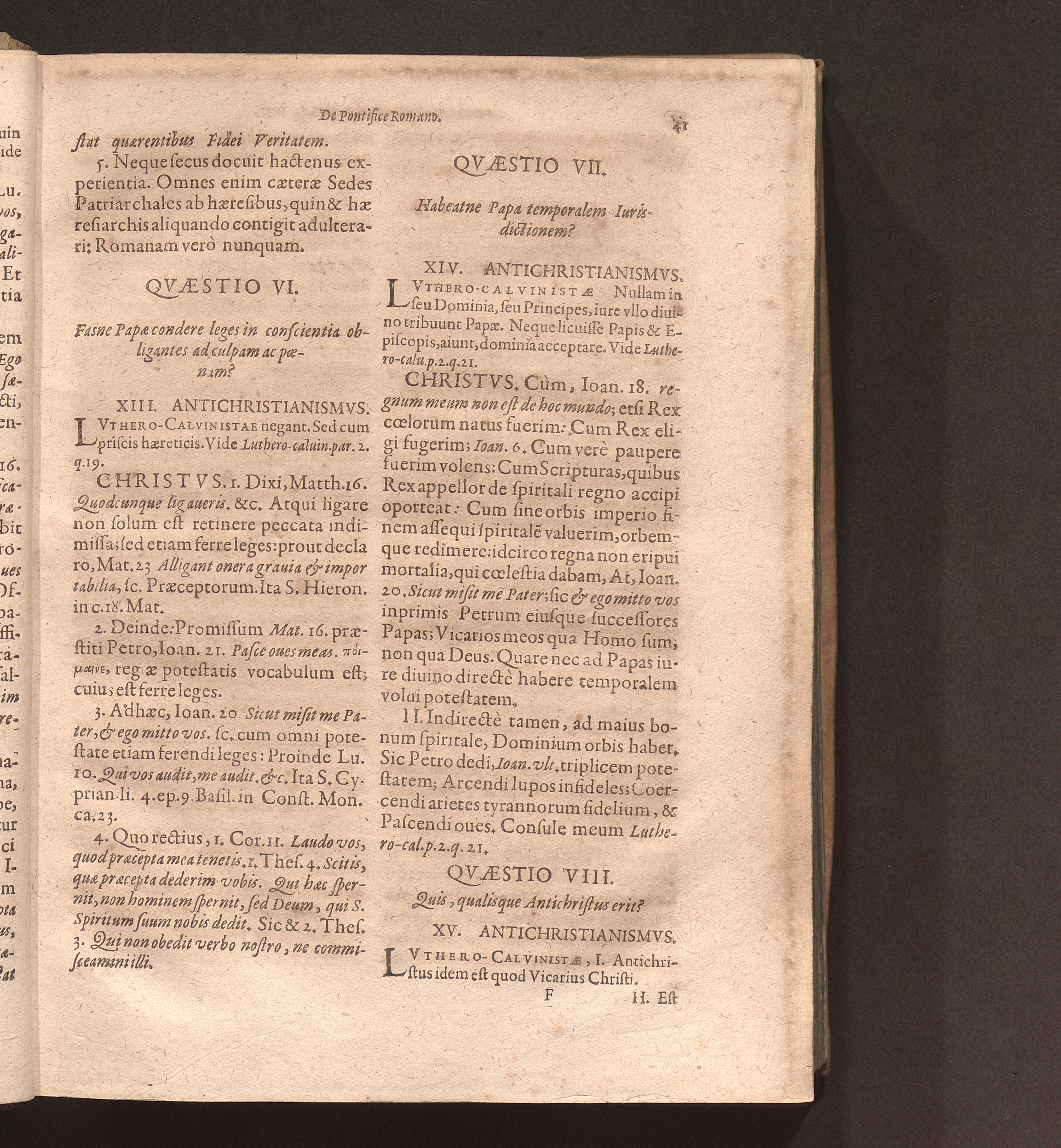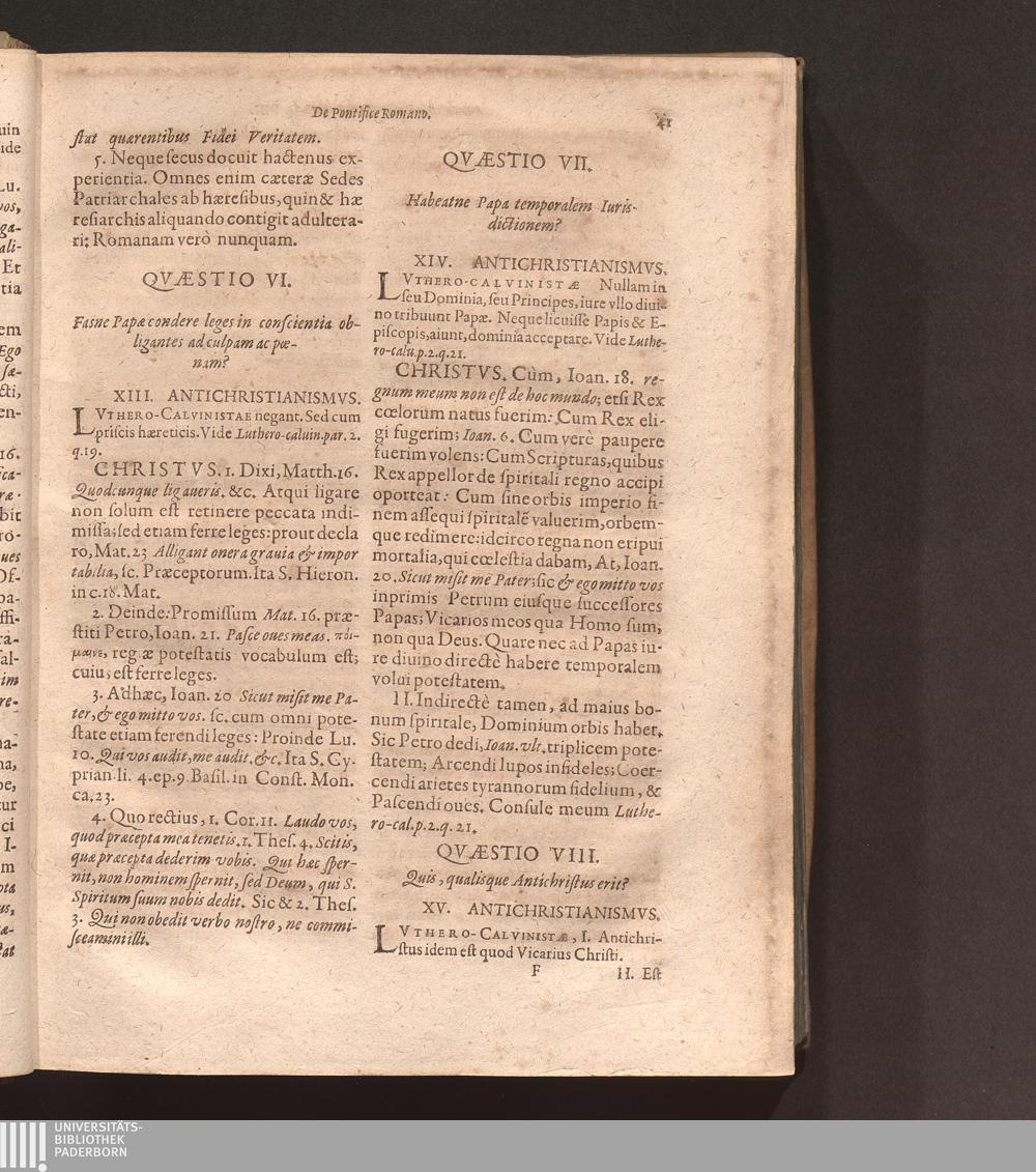 Controversiarvm Omnivm Hvivs Ævi Lvthero-Calvinisticarvm Libri Tres : Ex Illvstrissimo Cardinali Bellarmino in Epitomen redacti & sub diuersis titulis bis quatripartitis digesti / Avctore R. P. Fratre Ioanne Andrea Coppenstein Ordinis Prædicatorum Theologo