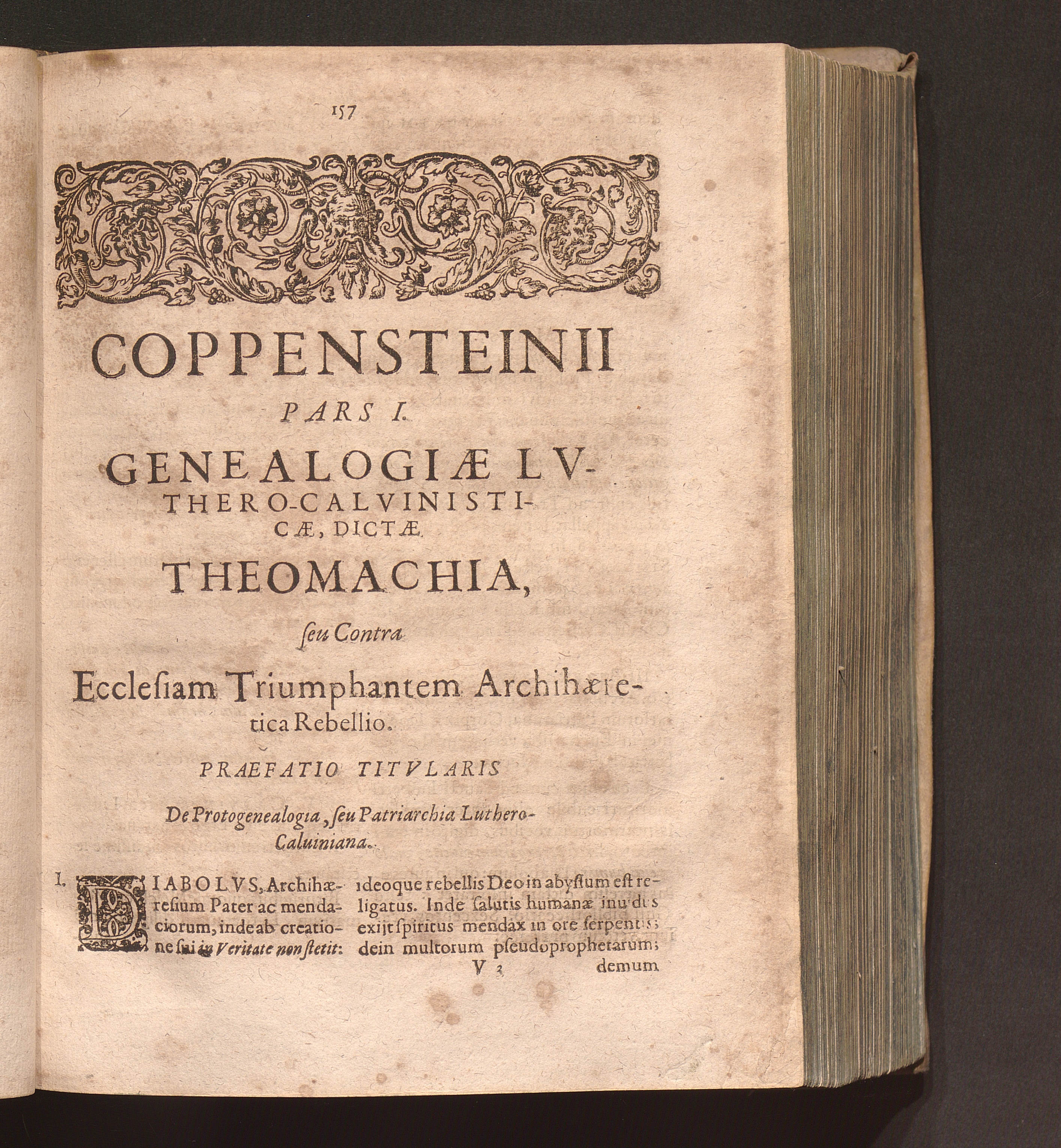 Controversiarvm Omnivm Hvivs Ævi Lvthero-Calvinisticarvm Libri Tres : Ex Illvstrissimo Cardinali Bellarmino in Epitomen redacti & sub diuersis titulis bis quatripartitis digesti / Avctore R. P. Fratre Ioanne Andrea Coppenstein Ordinis Prædicatorum Theologo
