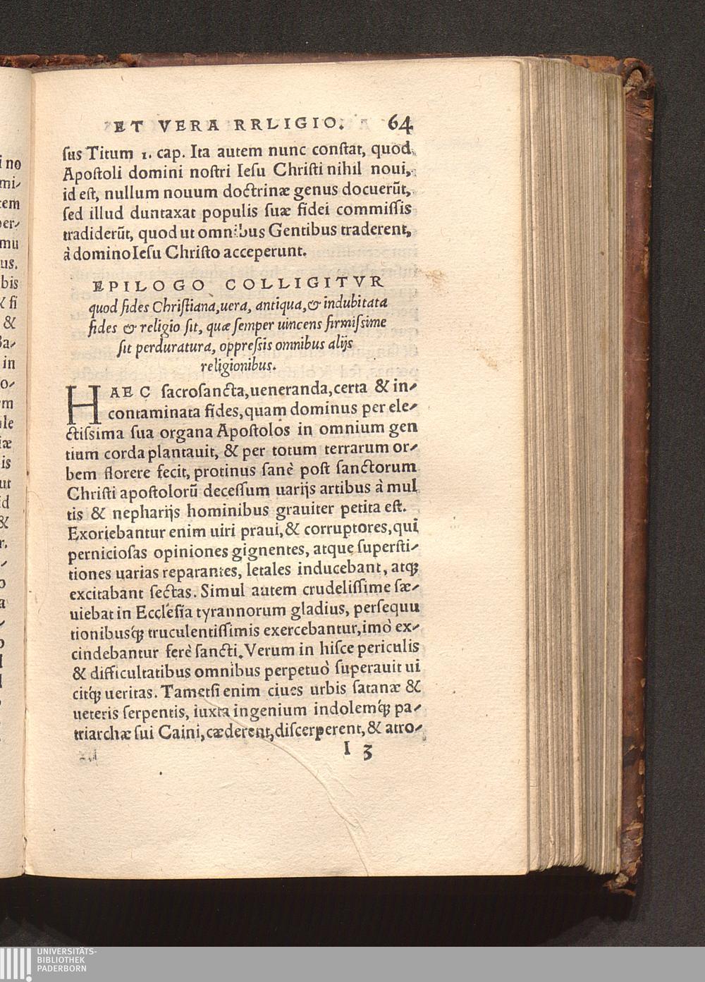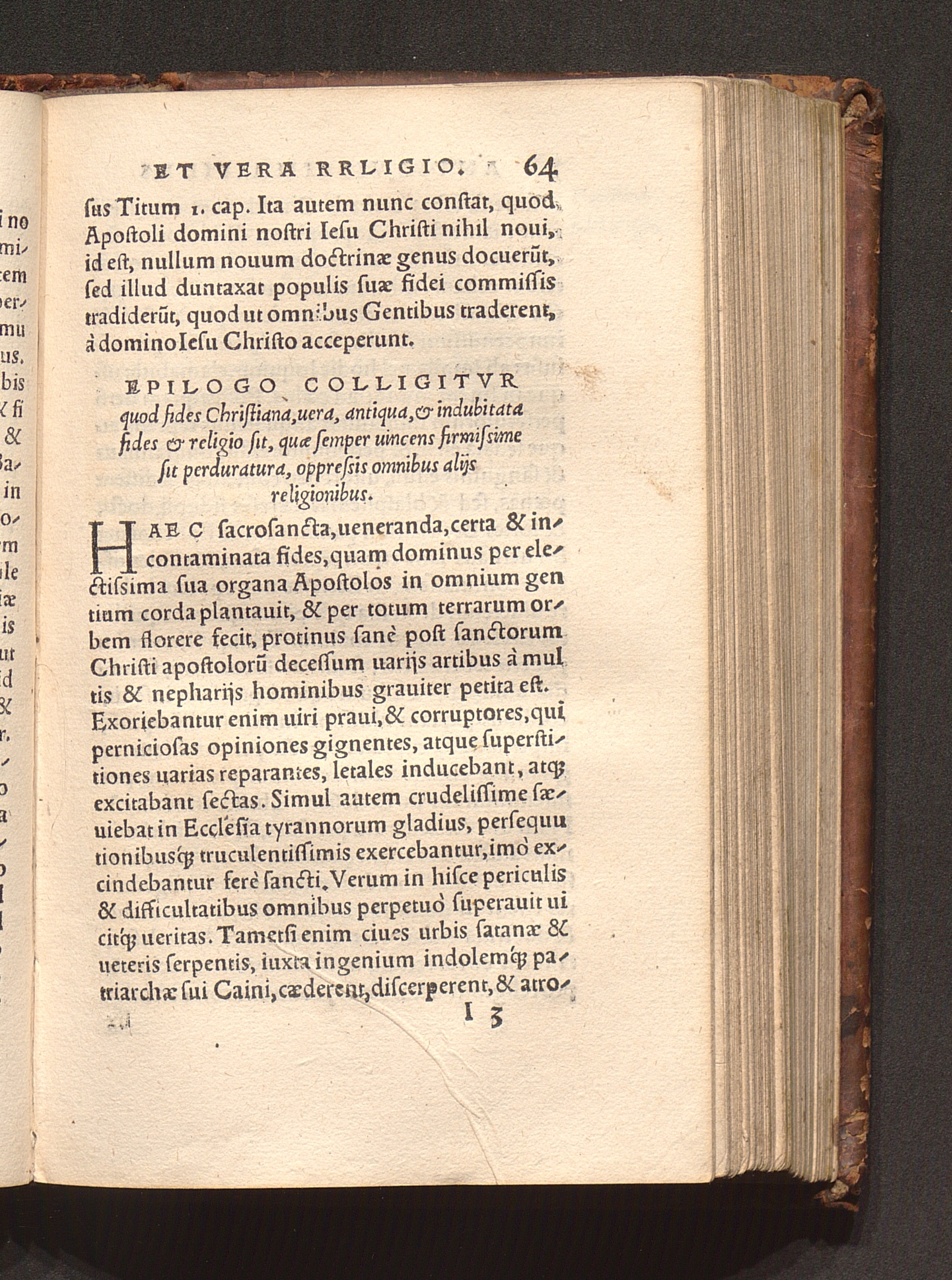 Antiqvissima Fides Et Vera Religio. Christianam Fidem Mox À Primis mundi exordijs ad hæc usq[ue] tempora durasse eamq[ue] ueram & indubitatam esse, Heinrychi Bullingeri Apodixis, siue clara &t euidens demo[n]stratio : In hoc Enchiridio (candide Lector) habebis breuissima[m] historia[m], cum temporu[m] supputatione sacrosanctæ nostræ fidei, déq[ue] illius præcipuis & operibus & professoribus: habebis huius item incrementa & defectus ac calamitates iam inde à prima mu[n]di origine, ad hæc usq[ue] tempora. Breuissima ergo periocha est utriusq[ue] Testamenti, & probatio, quod per solam fidem in Christum Iesum omnes pij deo & placuerint, & salutem fuerint consecuti / è Germanico in Latinam linguam traducta, per Diethelmum Cellariu[m] Tigurinum