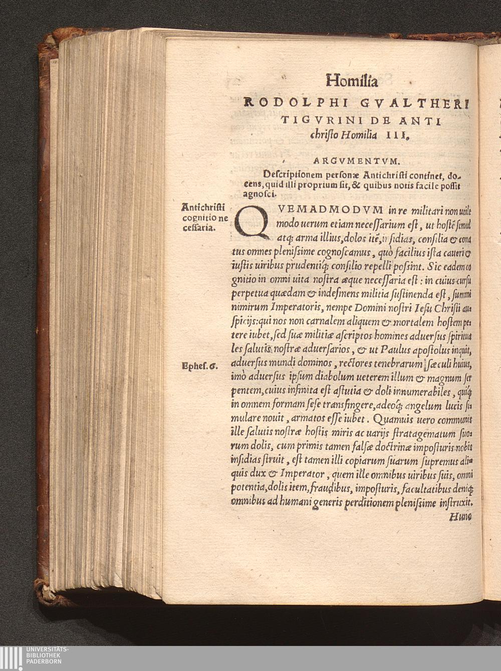 Rodolphi Gvaltheri Tigvrini Antichristvs. Id Est, Homili[a]e quinq[ue], quibus Romanum Pontifice[m] uerum, & magnum illum Antichristum esse probatur, quem prophetaru[m], Christi & apostolorum oracula ue[n]turum & cauendum prædixerunt