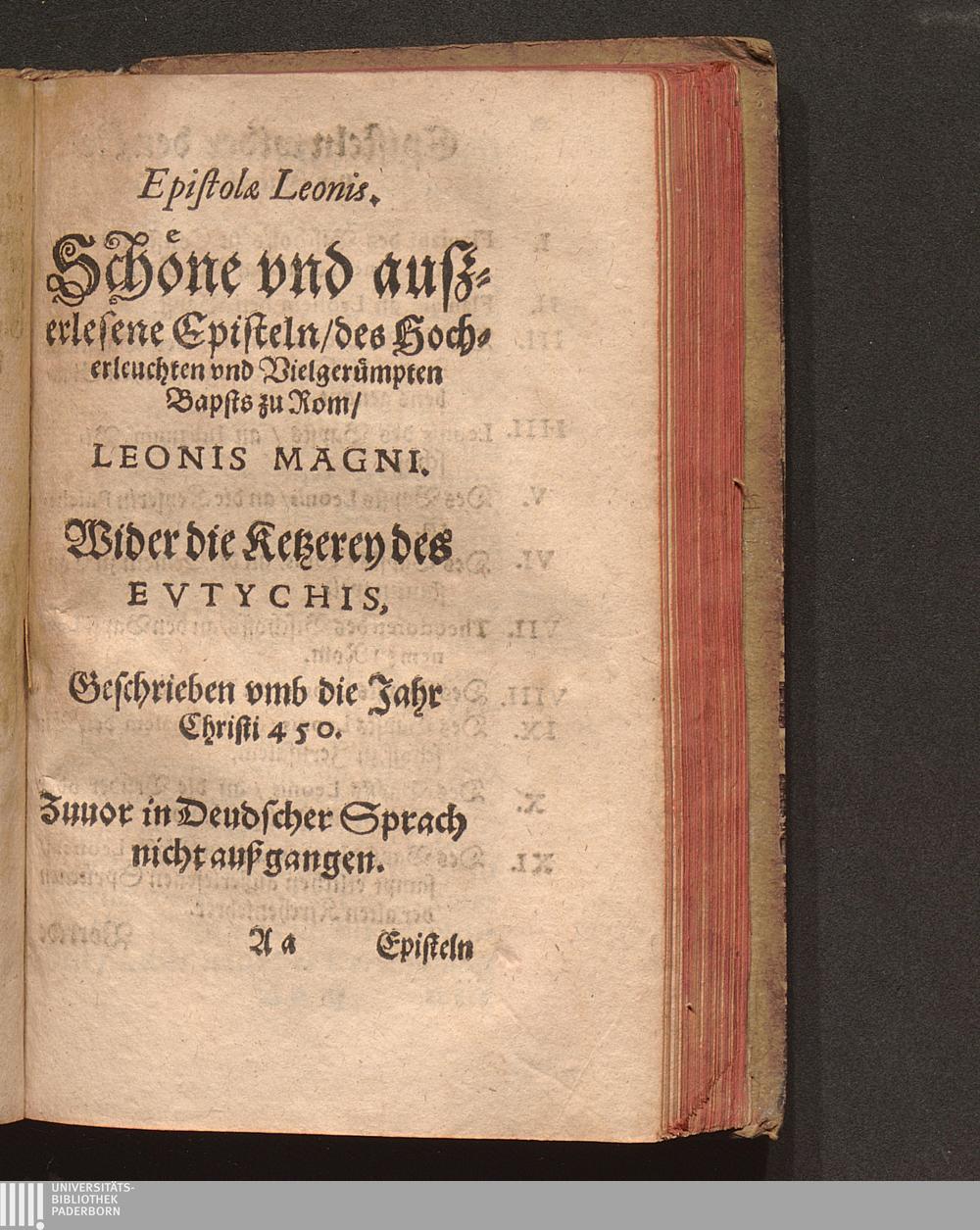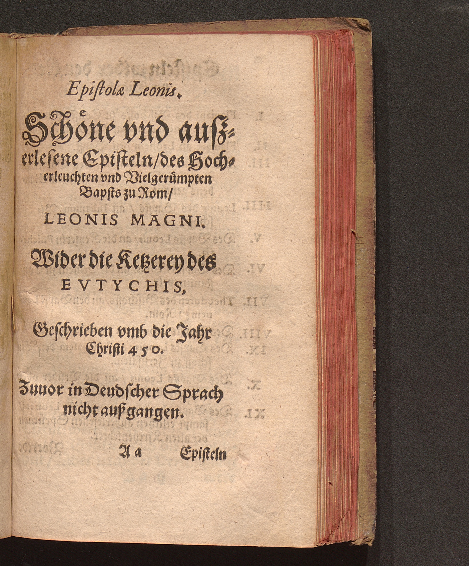 Dialogi || THEODORETI.|| Drey Sch[oe]ne || Gesprech/ Von vereinigung || vnd vnterscheid beyder Naturn in || der einigen Person Jhesu Christi/|| Des alten/ hochgelehrten || Bischoffs || THEODORETI.|| Sampt den vornemsten Epi=||steln/ des Hochber[ue]mpten || Bapsts zu Rom || LEONIS MAGNI.|| ... || Verdeutscht durch || Martinum Mollerum, Witte=||bergensem.||