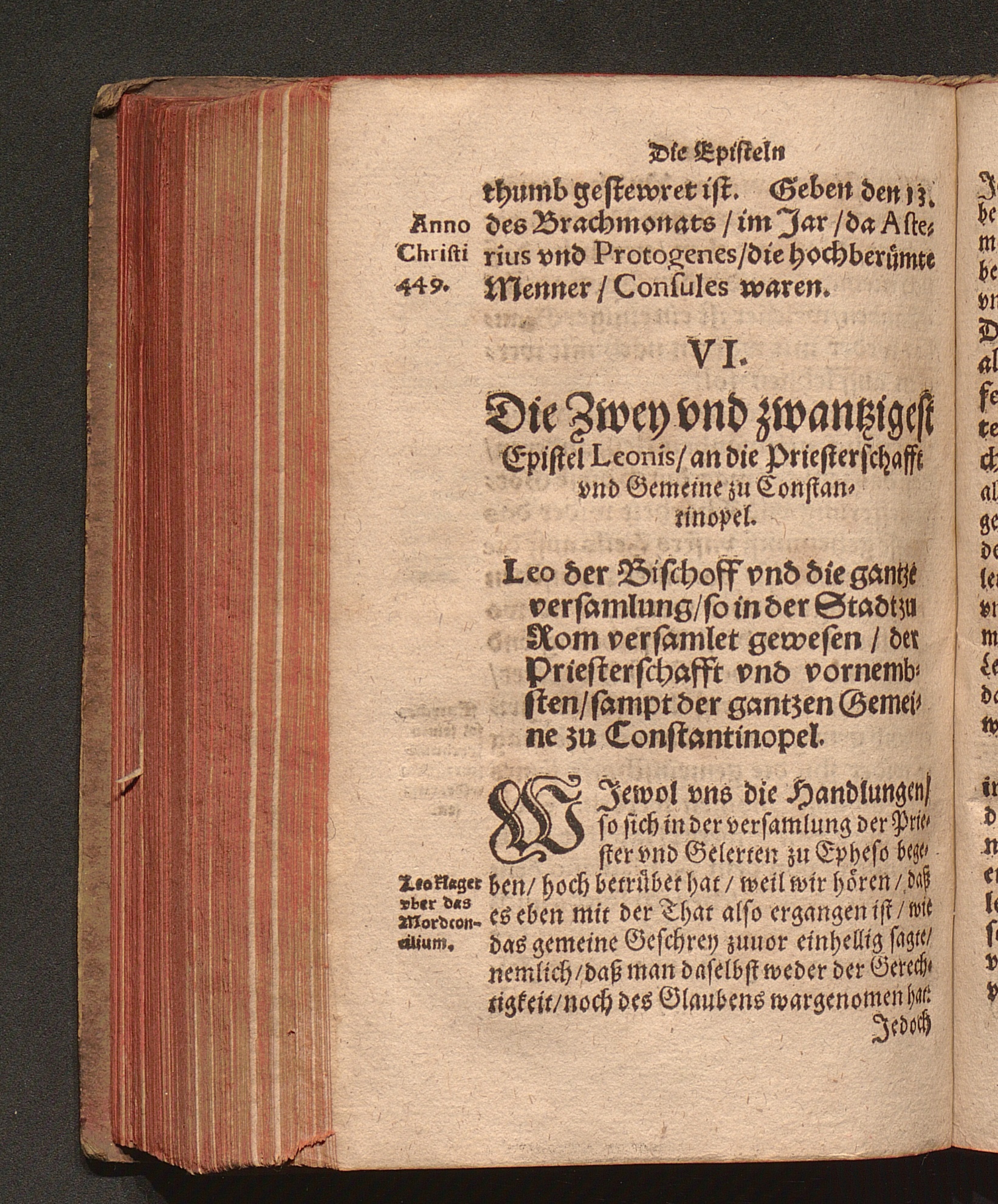 Dialogi || THEODORETI.|| Drey Sch[oe]ne || Gesprech/ Von vereinigung || vnd vnterscheid beyder Naturn in || der einigen Person Jhesu Christi/|| Des alten/ hochgelehrten || Bischoffs || THEODORETI.|| Sampt den vornemsten Epi=||steln/ des Hochber[ue]mpten || Bapsts zu Rom || LEONIS MAGNI.|| ... || Verdeutscht durch || Martinum Mollerum, Witte=||bergensem.||