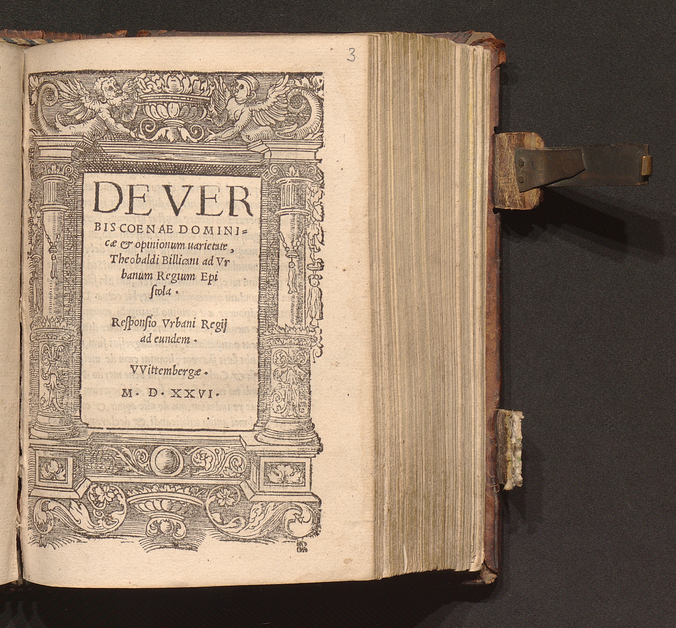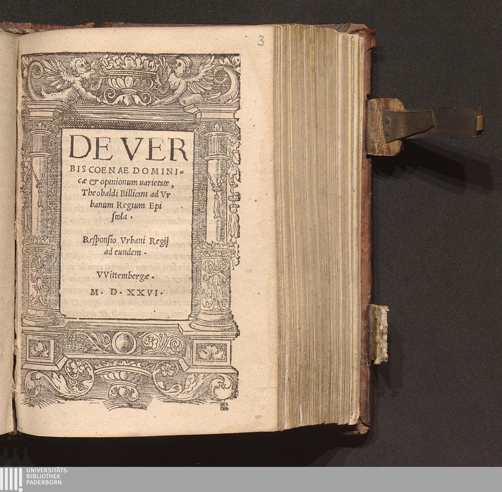 De Ver||bis Coenae Domini-||cæ & opinionum uarietate,|| Theobaldi Billicani ad Vr||banum Regium Epi||stola