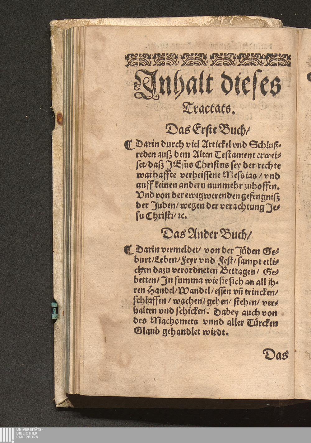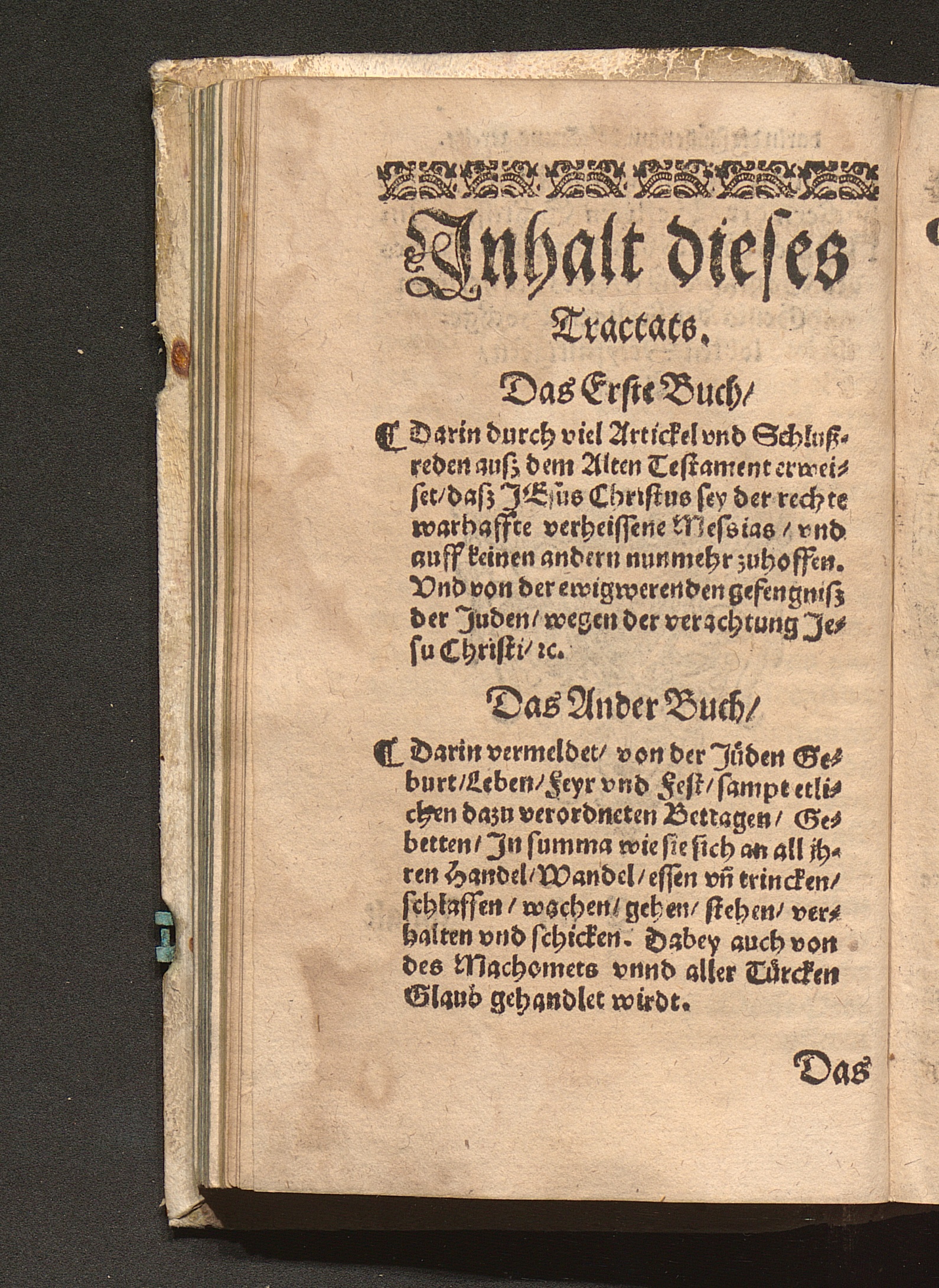 Flagellvm Ivdeorvm, Juden Geissel/ Das ist: Ein Neuwe sehr nütze vnd gründliche Erweisung/ daß Iesvs Christvs, Gottes vnd der H. Jungkfrauwen Marien Sohn/ der wahre verheissene vnd gesandte Messias sey : Wider alle ... Juden/ deren ... Messias noch kommen ... soll. Darbey auch angehengt von des Machomets vn[d] aller Türcken vrsprung/ Glaube[n] vnd Gottsdienst ... Mit allerley Exempeln/ lustigen Historien vnd Jüdischen Fabelwerck ... / Auß langweiliger erfahrung zusammen gebracht/ Durch einen getaufften Juden/ Ernestum Ferdinandum Hessen der Artzney Doctor