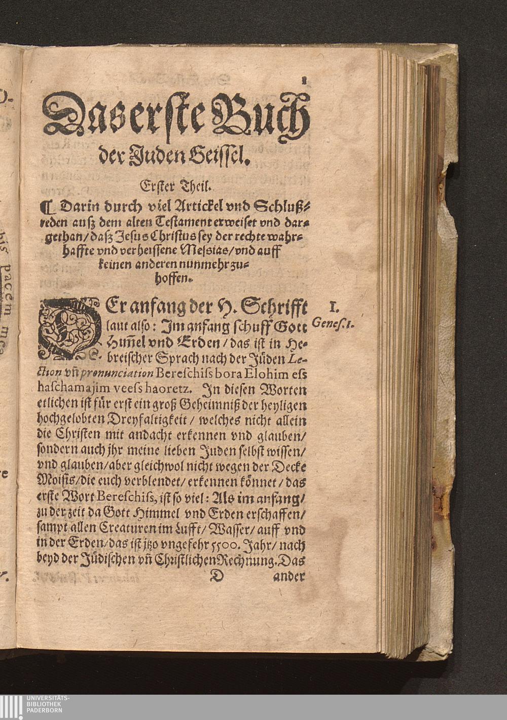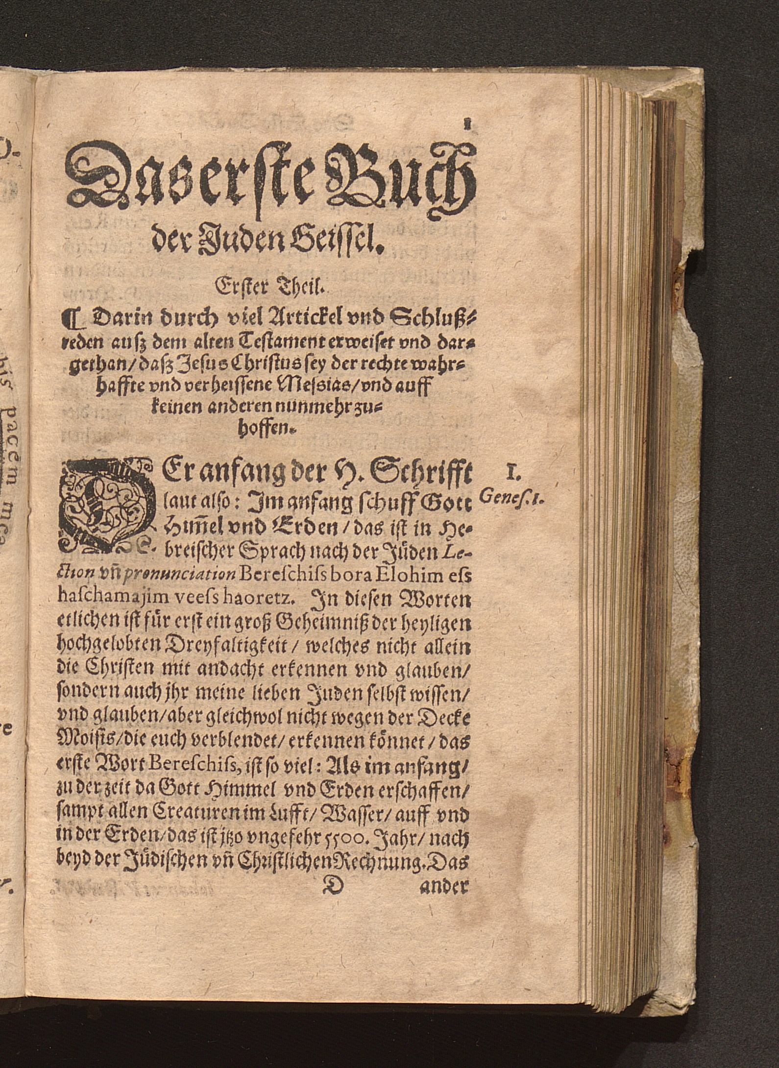 Flagellvm Ivdeorvm, Juden Geissel/ Das ist: Ein Neuwe sehr nütze vnd gründliche Erweisung/ daß Iesvs Christvs, Gottes vnd der H. Jungkfrauwen Marien Sohn/ der wahre verheissene vnd gesandte Messias sey : Wider alle ... Juden/ deren ... Messias noch kommen ... soll. Darbey auch angehengt von des Machomets vn[d] aller Türcken vrsprung/ Glaube[n] vnd Gottsdienst ... Mit allerley Exempeln/ lustigen Historien vnd Jüdischen Fabelwerck ... / Auß langweiliger erfahrung zusammen gebracht/ Durch einen getaufften Juden/ Ernestum Ferdinandum Hessen der Artzney Doctor