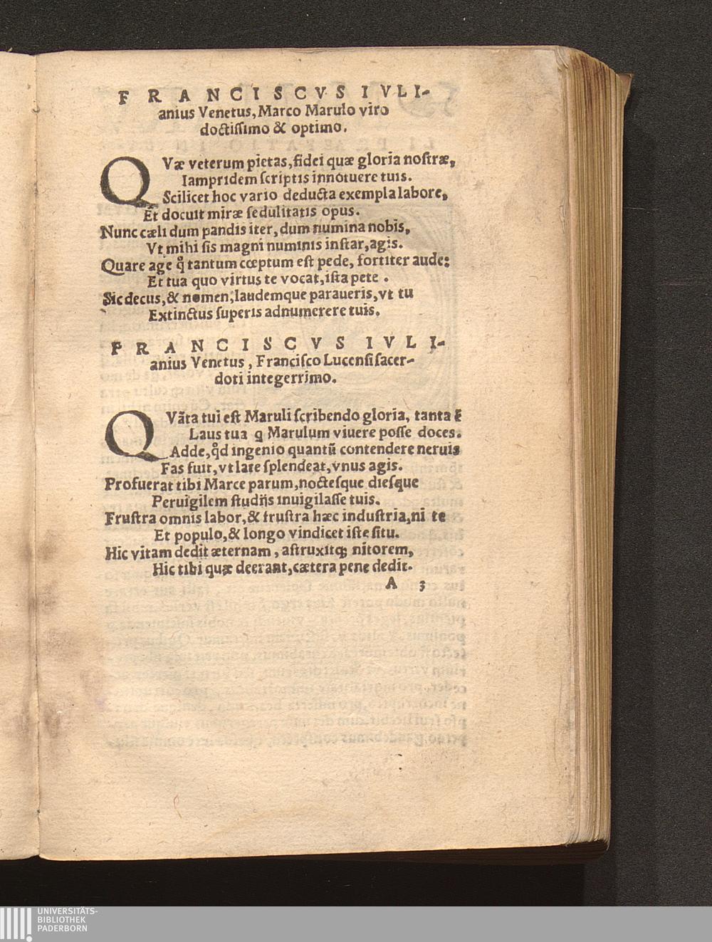 Franciscvs Ivlianivs Venetus, Marco Marulo viro doctissimo & optimo.