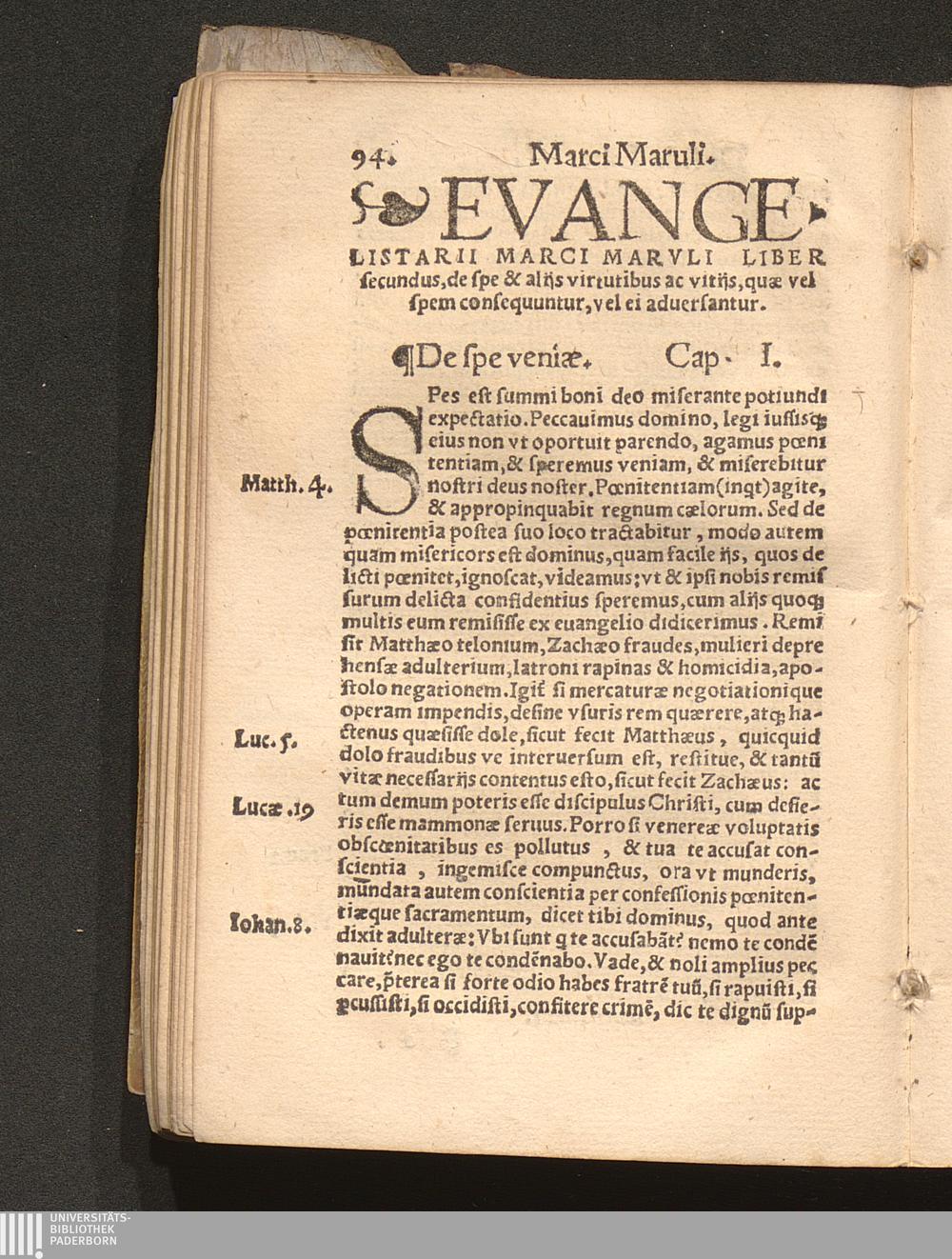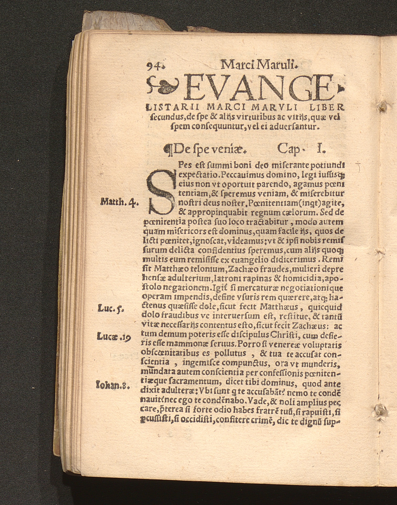 Evangelistarivm M. Maruli Spalaten. opus vere euangelicum, sub fidei, spei & charitatis titulis in septem libros partitum