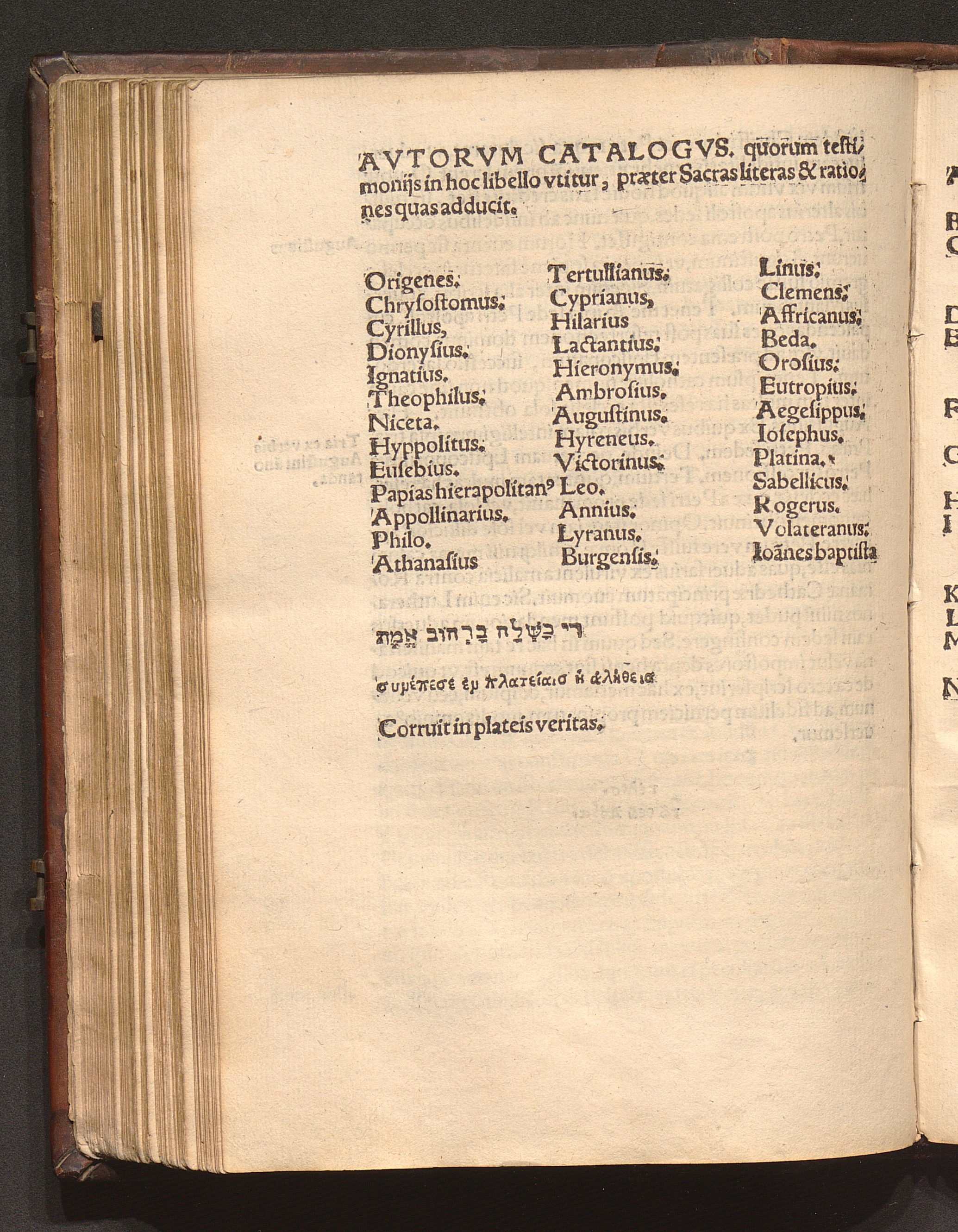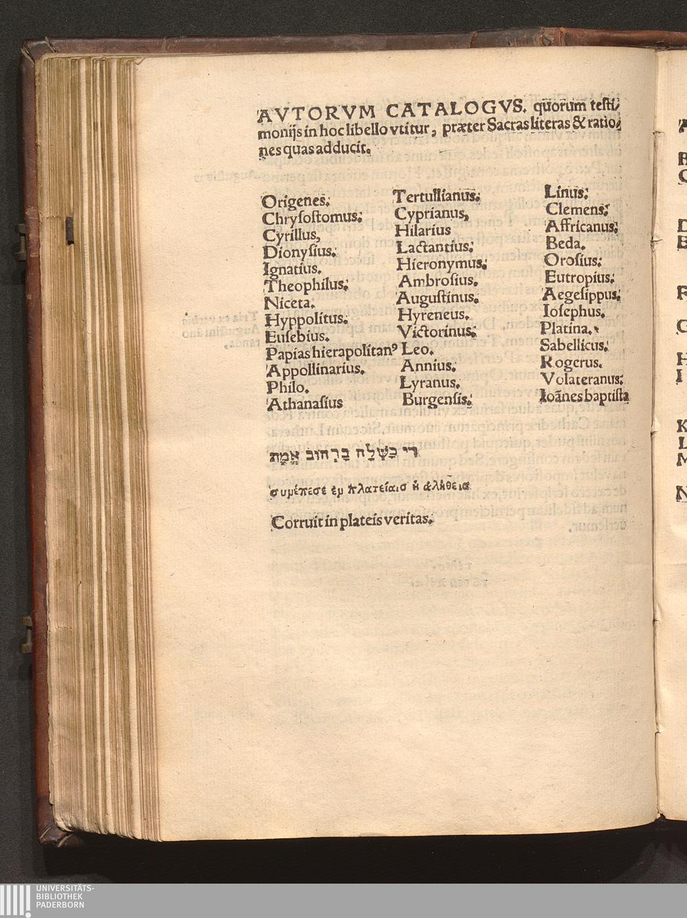 Avtorvm Catalogvs. quorum testimonijs in hoc libello vtitur, præter Sacras literas[...]