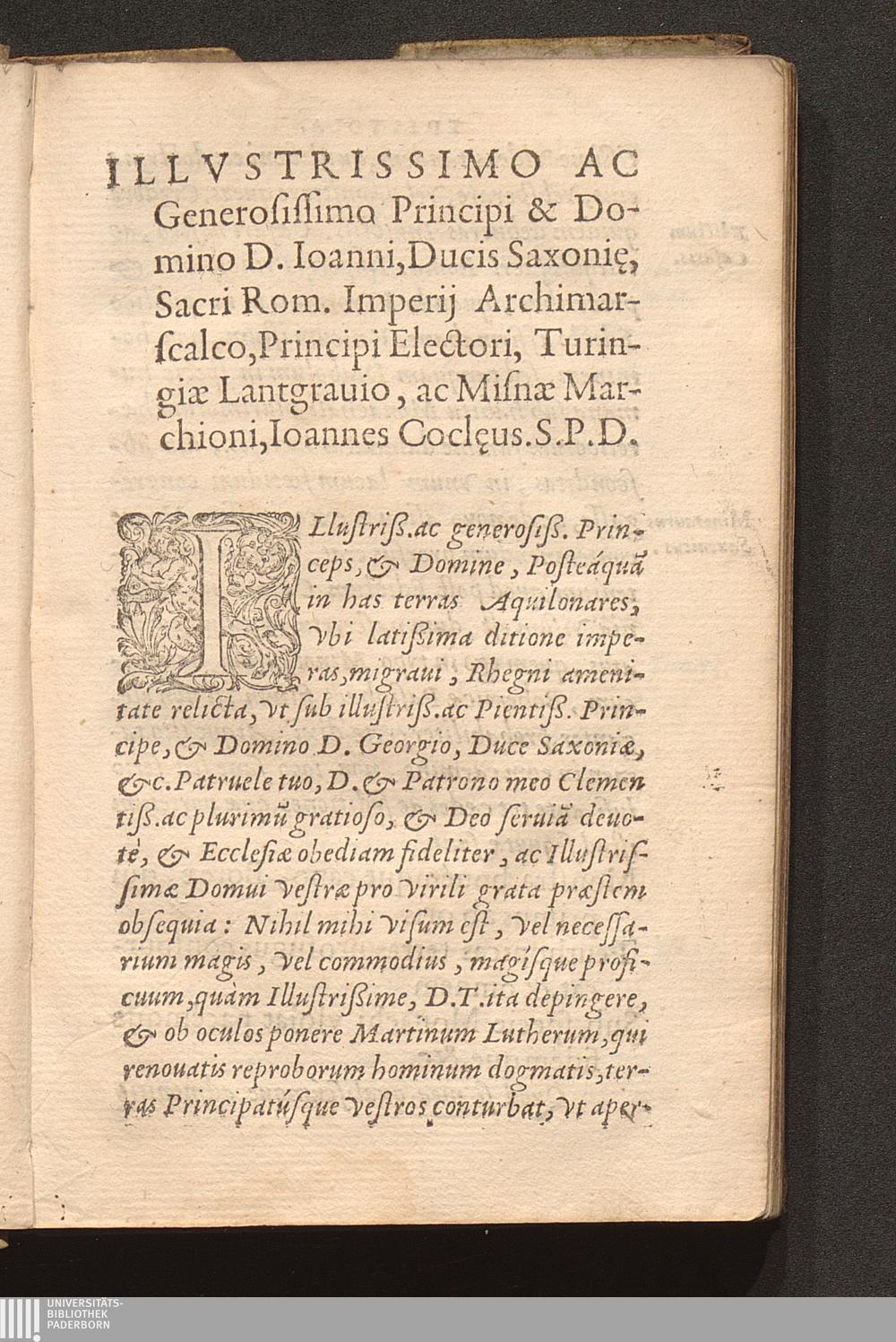 Illvstrissimo ac Generosissimo Principi & Domino D. Ioanni, Ducis Saxoni[a]e, Sacri.[...]