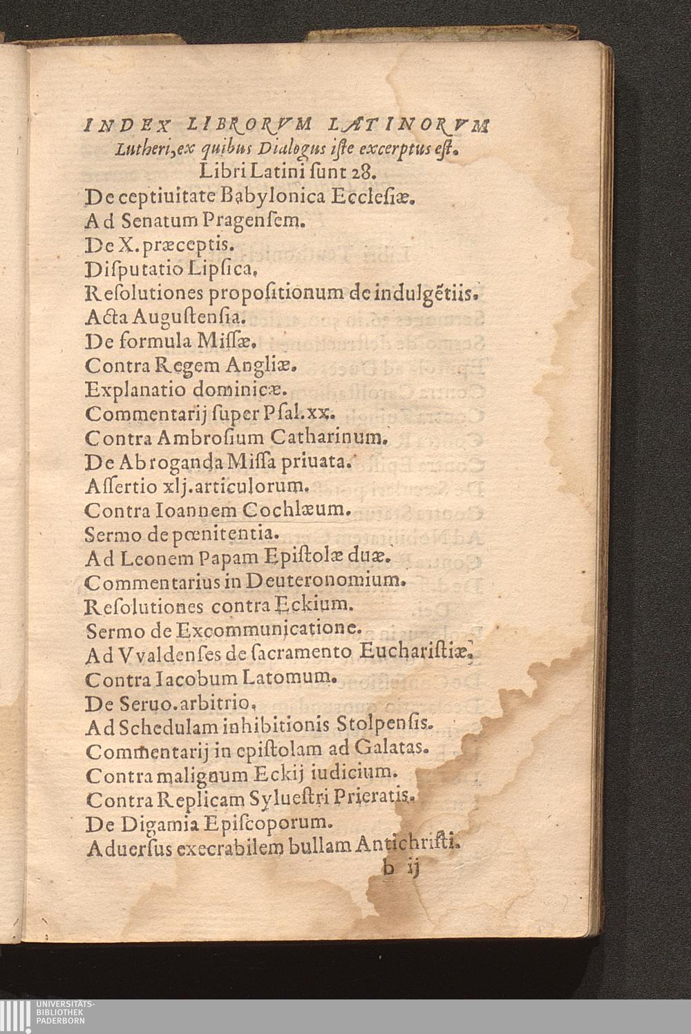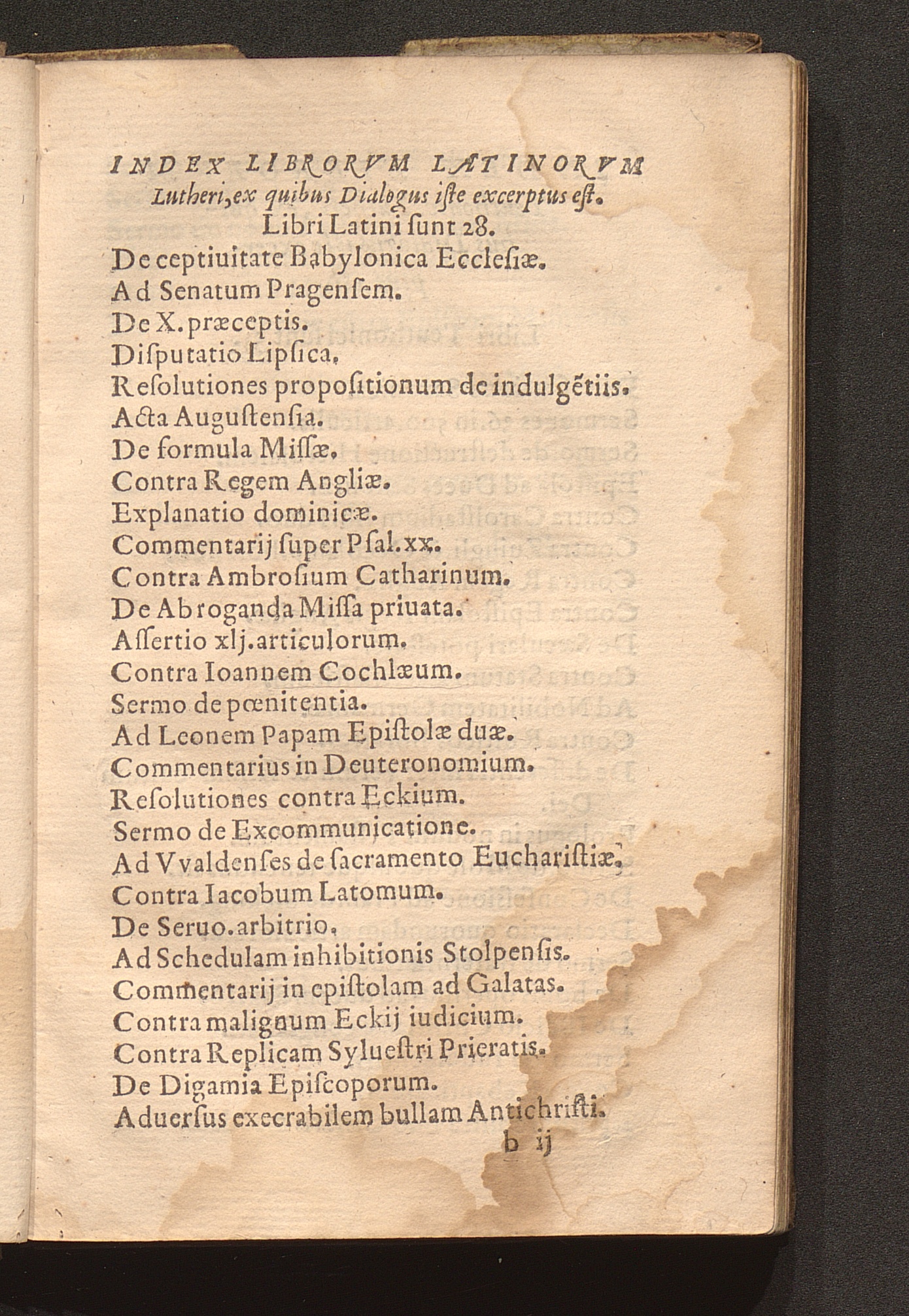 Index Librorvm Latinorvm Lutheri, ex quibus Dialogus iste excerptus est.