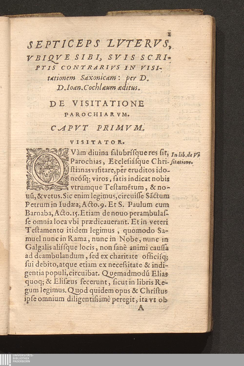 Septiceps Lvthervs, Vbiqve Sibi, Svis Scriptis contrarius, in visitationem Saxonicam : Cum aliis quibusdam eiusdem materiæ ... / per D. Ioan. Cochlæum ante annos 44. æditus