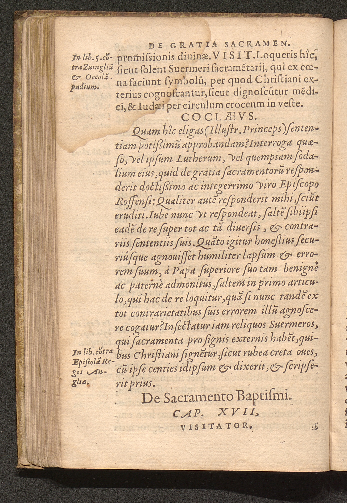 Septiceps Lvthervs, Vbiqve Sibi, Svis Scriptis contrarius, in visitationem Saxonicam : Cum aliis quibusdam eiusdem materiæ ... / per D. Ioan. Cochlæum ante annos 44. æditus