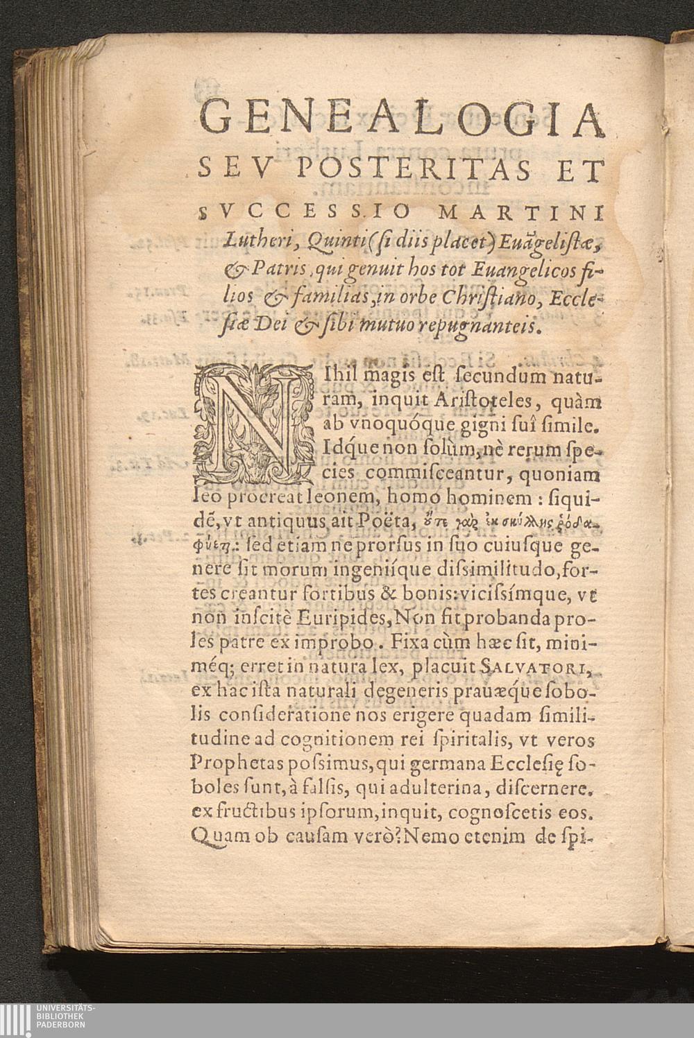 Genealogia sev Posteritas Et Svccessio Martini Lutheri, Quinti (si diis placet) Eua[n]gelistae,[...]