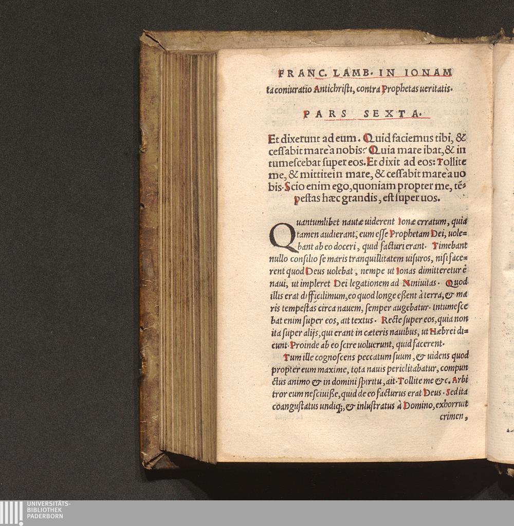 Pars Sexta. Sexto, dicit nautis in uerbo Domini, ut eum mittant in mare, & ceßabit[...]