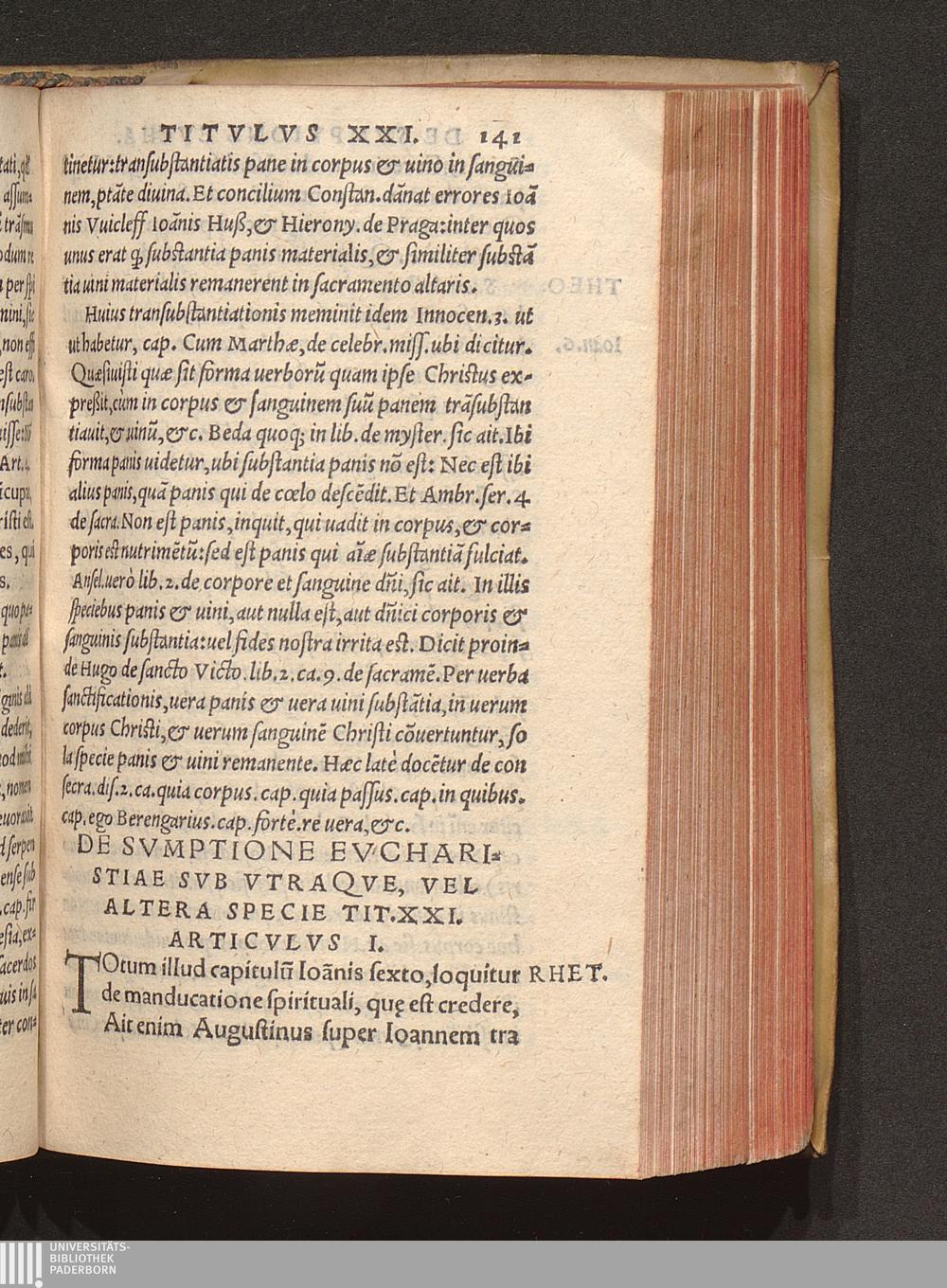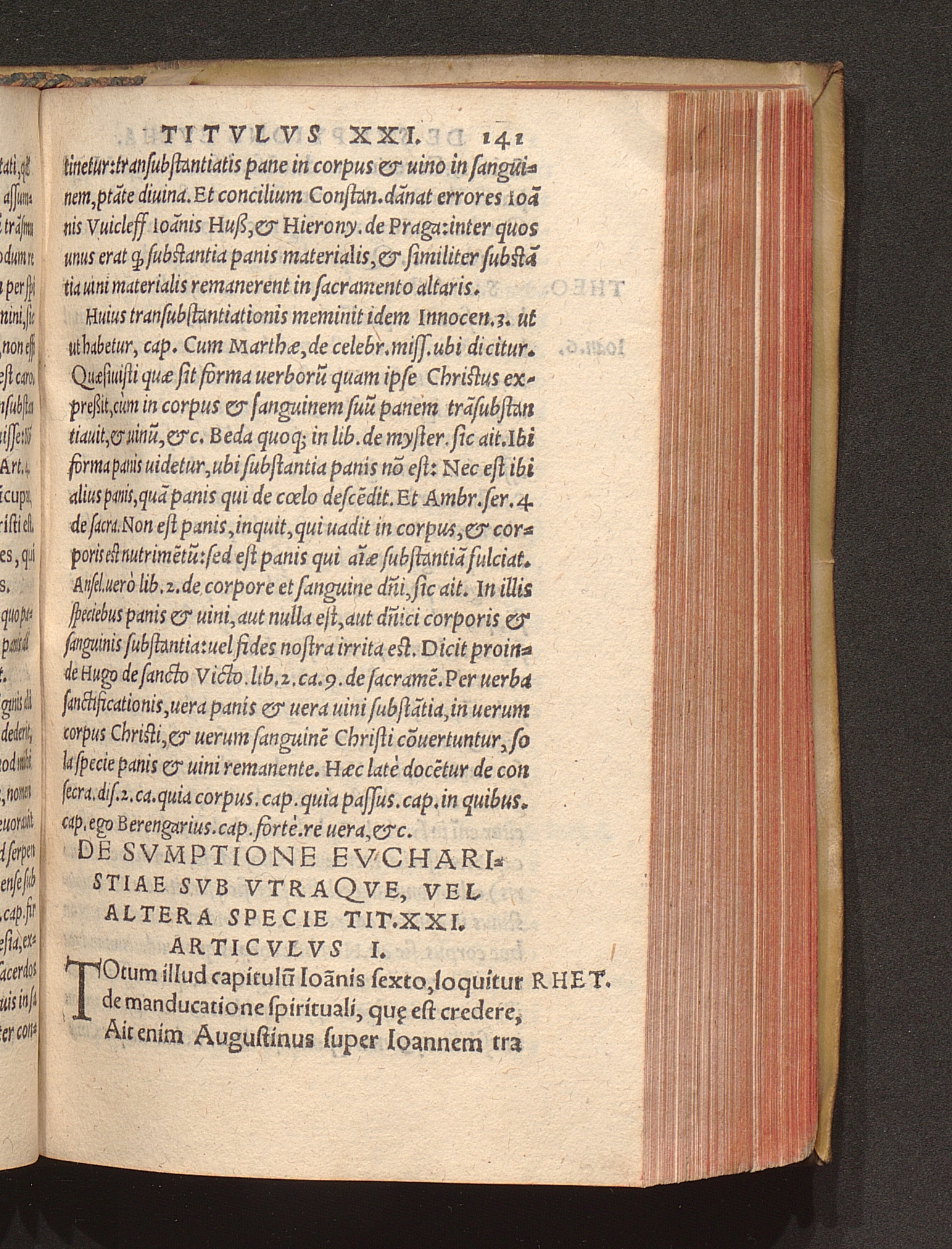 De sumptione Euchari[stiæ] sub utraq[ue], uel altera specie, ti. 21