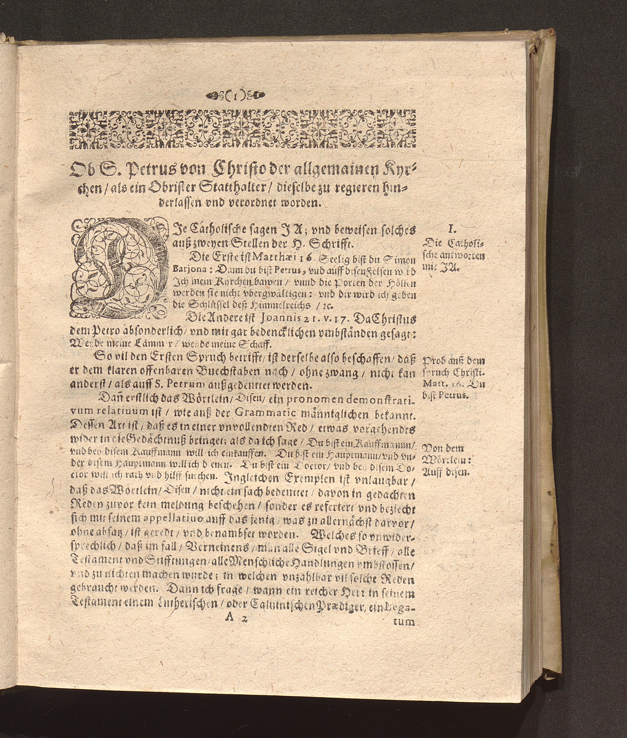 Der Ander Theil (1653) Daß ist/ Kurtzer vnd gründlicher Discvrs, Das Christus/ als das Principal- vnd Obriste Haupt der allgemainen Kyrchen/ nach seiner Himmelfahrt/ den H. Apostel Petrum/ als ein nachgesetztes sichtbarliches Ministerial- vnd Statthalter-Haupt/ eben derselben allgemainen Kyrchen vorgesetzt/ vnd hinderlassen habe