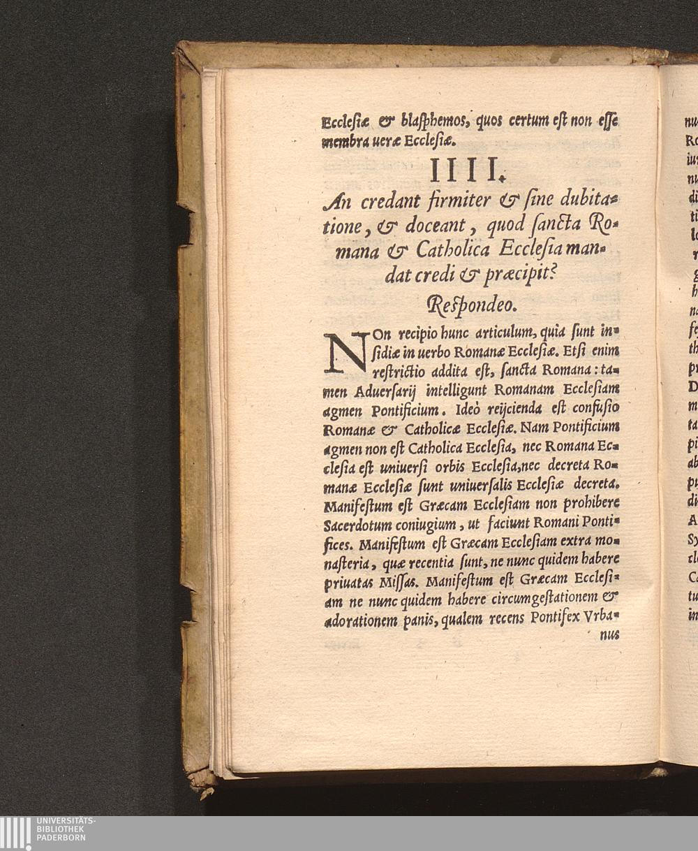 IIII. An credant firmiter & sine dubitatione, & doceant, quod sancta Romana & Catholica[...]