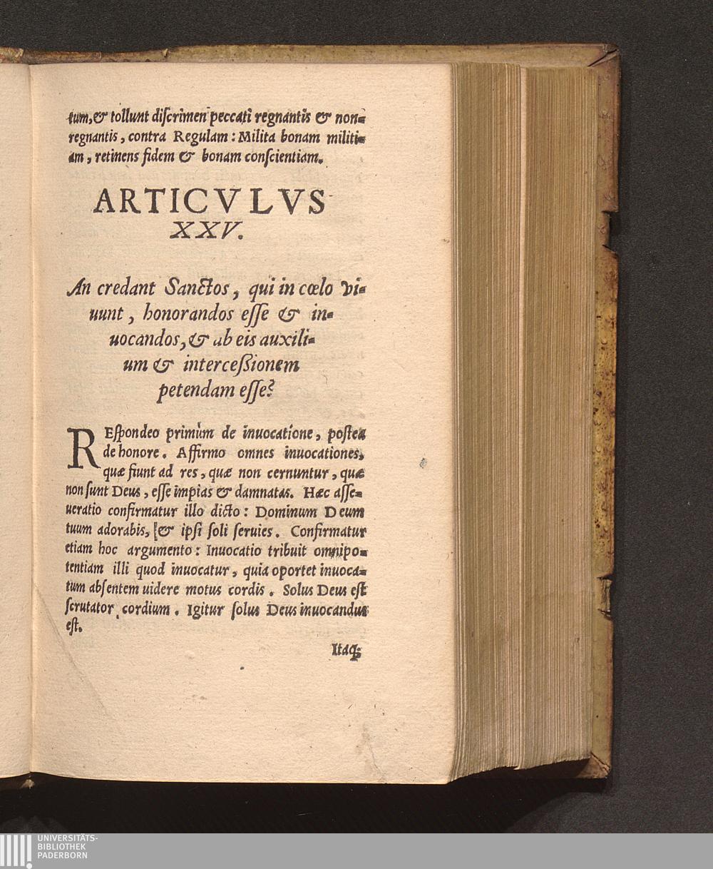 XXV. An credant Sanctos, qui in cœlo uiuunt, honorandos, & inuocandos, & ab eis auxilium[...]