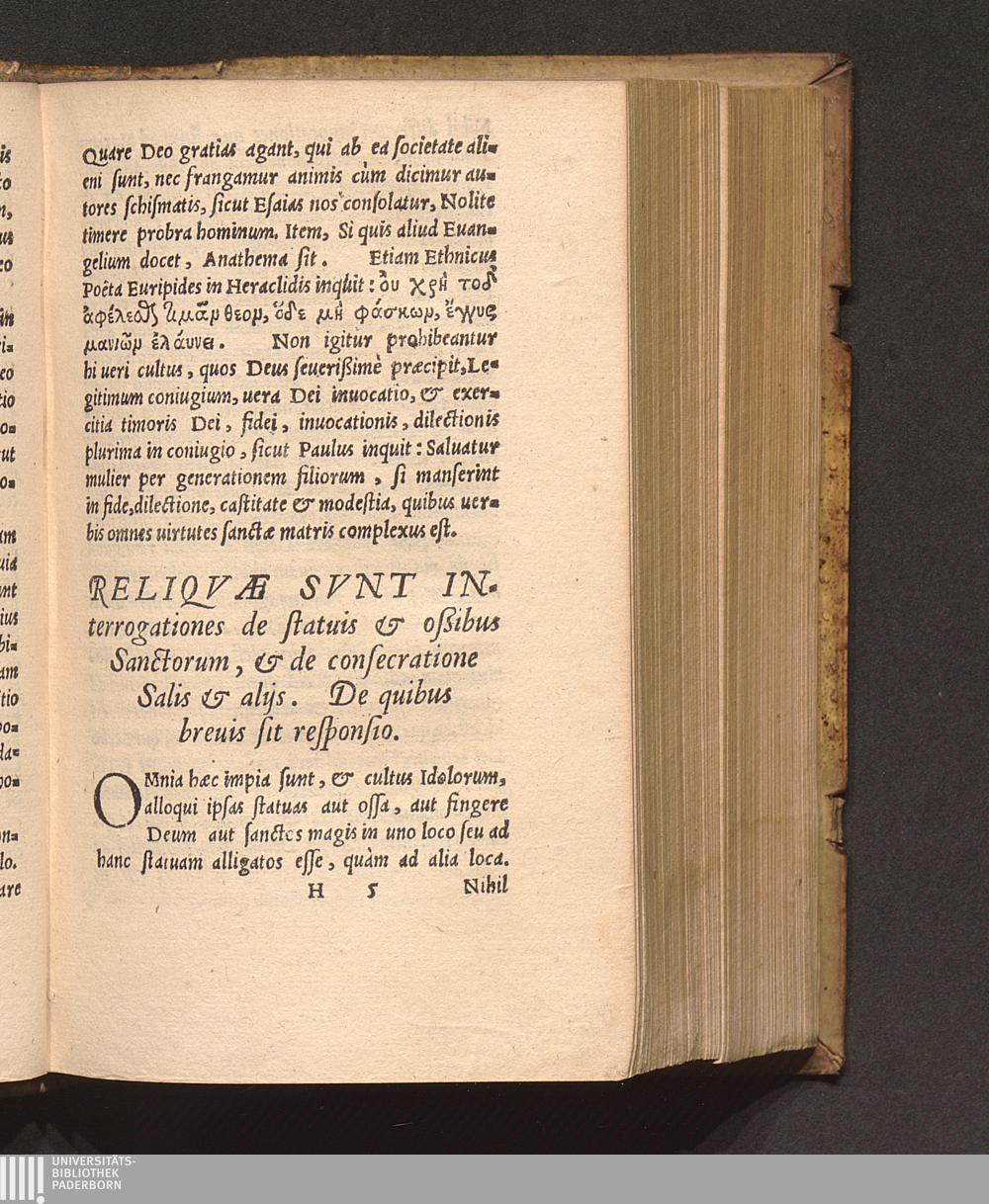Reliqvæ Svnt Interrogationes de statuis & oßibus Sanctorum, & de consecratione Salis[...]