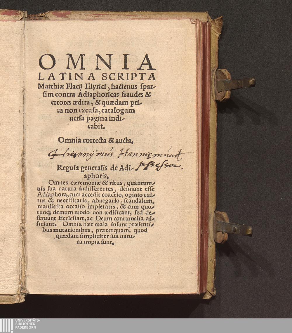 Omnia Latina Scripta Matthiæ Flacij Illyrici : hactenus sparsim contra Adiaphoricas fraudes & errores ædita, & quædam prius non excusa, catalogum uersa pagina indicabit