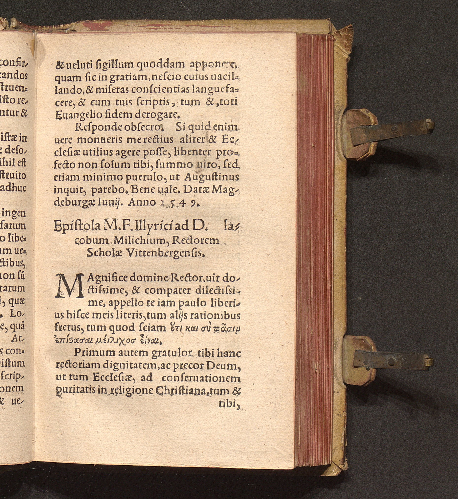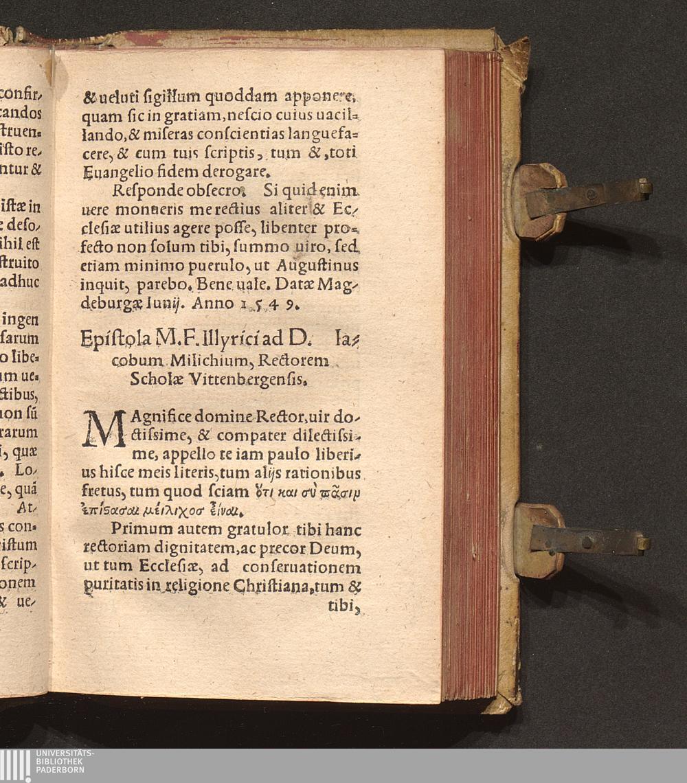 Epistola M. F. Illyrici and D. Iacobum Milichium, Rectorem Scholæ Vittenbergensi[...]